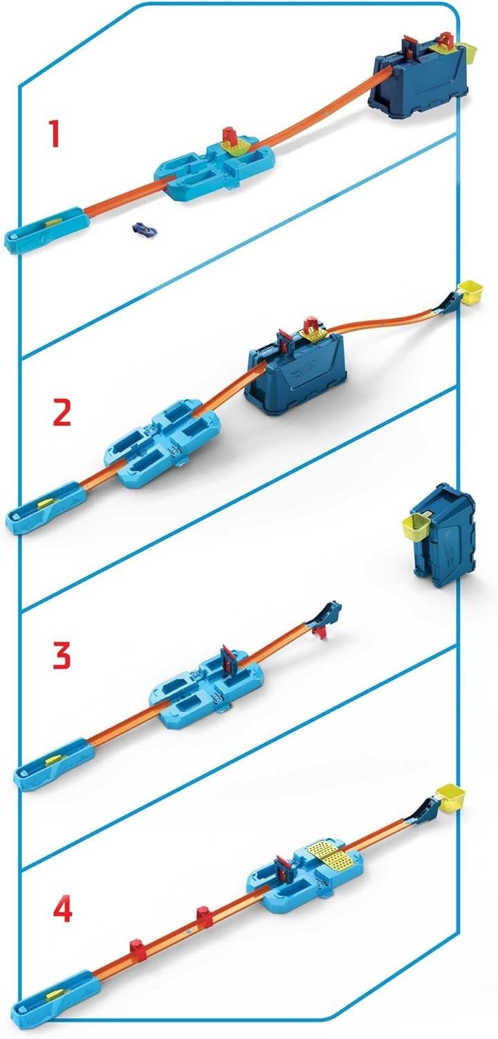 The box and lid not only hold all the track pieces for easy storage, but can also be used as part of any build to enhance challenges and intensify stunts.