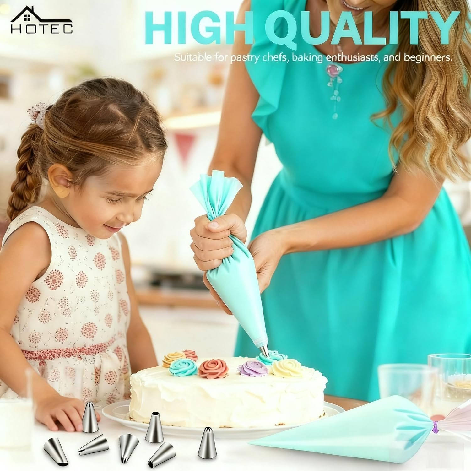 ✅ Food-Grade & BPA-Free Materials​: The ​icing bags and tips​ set are made from Food-Grade materials. HOTEC Baking Supplies guaranteeing a safe baking experience for you and your family.