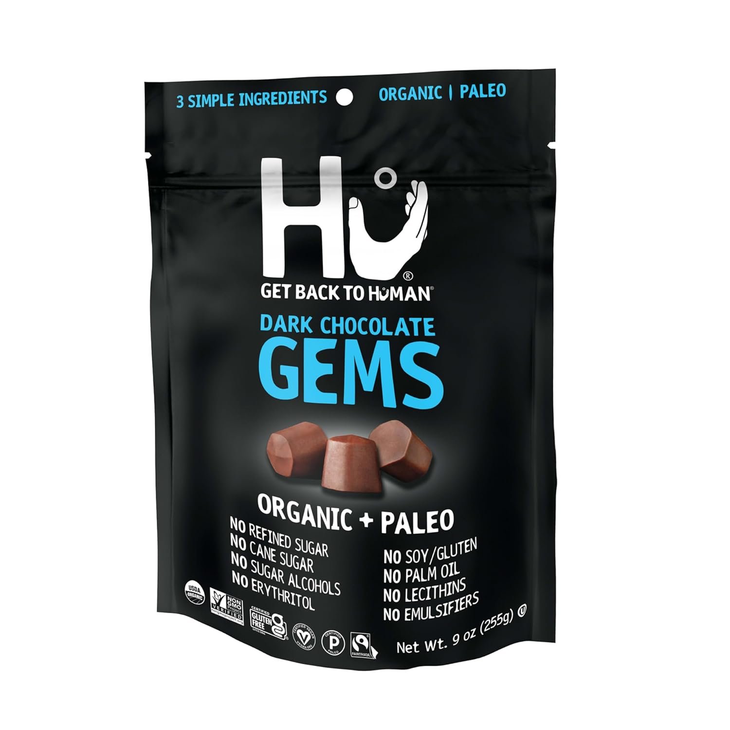 WHY HU CHOCOLATE?: Hu Gems are the newest addition to our cult-favorite vegan chocolate line free from dairy, palm oil, emulsifiers, soy lecithin, gluten, refined sugar, cane sugar and sugar alcohols. Like all Hu products, Hu Gems are proudly Vegan, Paleo, Gluten-Free, Non-GMO, and Kosher. Hu Gems are made with organic cacao, unrefined organic coconut sugar, organic fair-trade cocoa butter. It’s that simple.