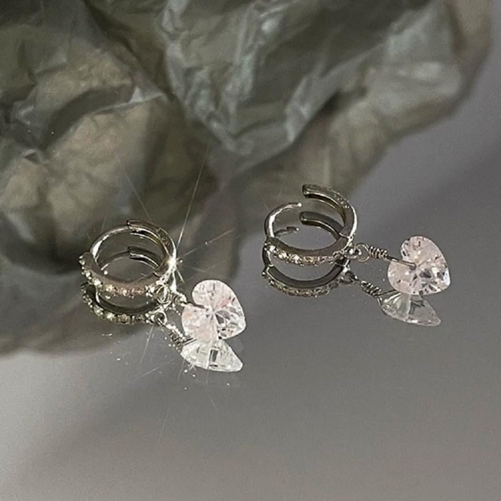 Huggie Crystal Heart Hoop Earrings for Women Girls 925 Sterling Silver CZ Charms Dangle Drop Small Hoops Cartilage Hypoallergenic Piercing Cuff Wrap Cute Birthday Valentine Mother’s Jewelry Gifts for Her