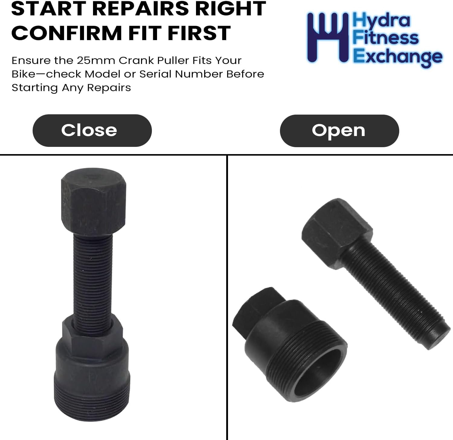 🔧 Universal Crank Compatibility: Designed for 25mm crank arms, this Hydra Fitness Exchange Crank Puller fits both spline and standard cranksets. Ideal for home gym enthusiasts and bike repair pros, it ensures easy removal on most stationary bikes, including Schwin and Bow.flex models.