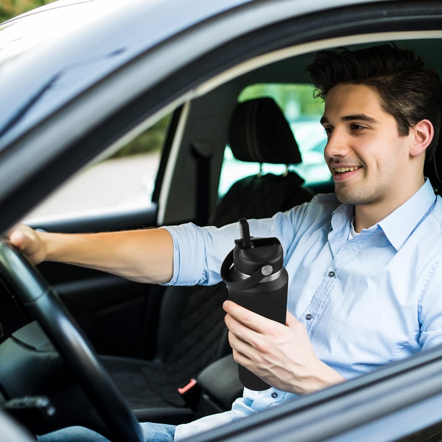 【NEW DESIGNED WATER BOTTLE】 HYDROWION T-shape water bottle with its sleek and new designed slim outline fits in any standard cup holder snugly.The largest capacity water flask in the cup holder can fit in any standard cupholder,perfect for outdoor activities especially for driving,field trip,beach,camping,cycling,etc