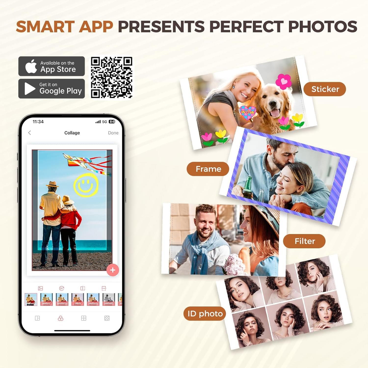 📸[Instant photo printer with intelligent APP]This photo printer for smartphone comes with Heyphoto software, the APP contains filters, text addition, sticker decoration and other functions are free to use, to meet the needs of personalized creation.This App features AR video technology that allows you to print physical photos, making it an excellent way to share memories and create keepsakes. It is not just a photo, but a miniature time machine