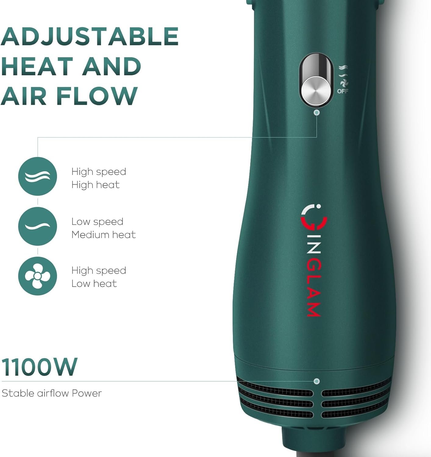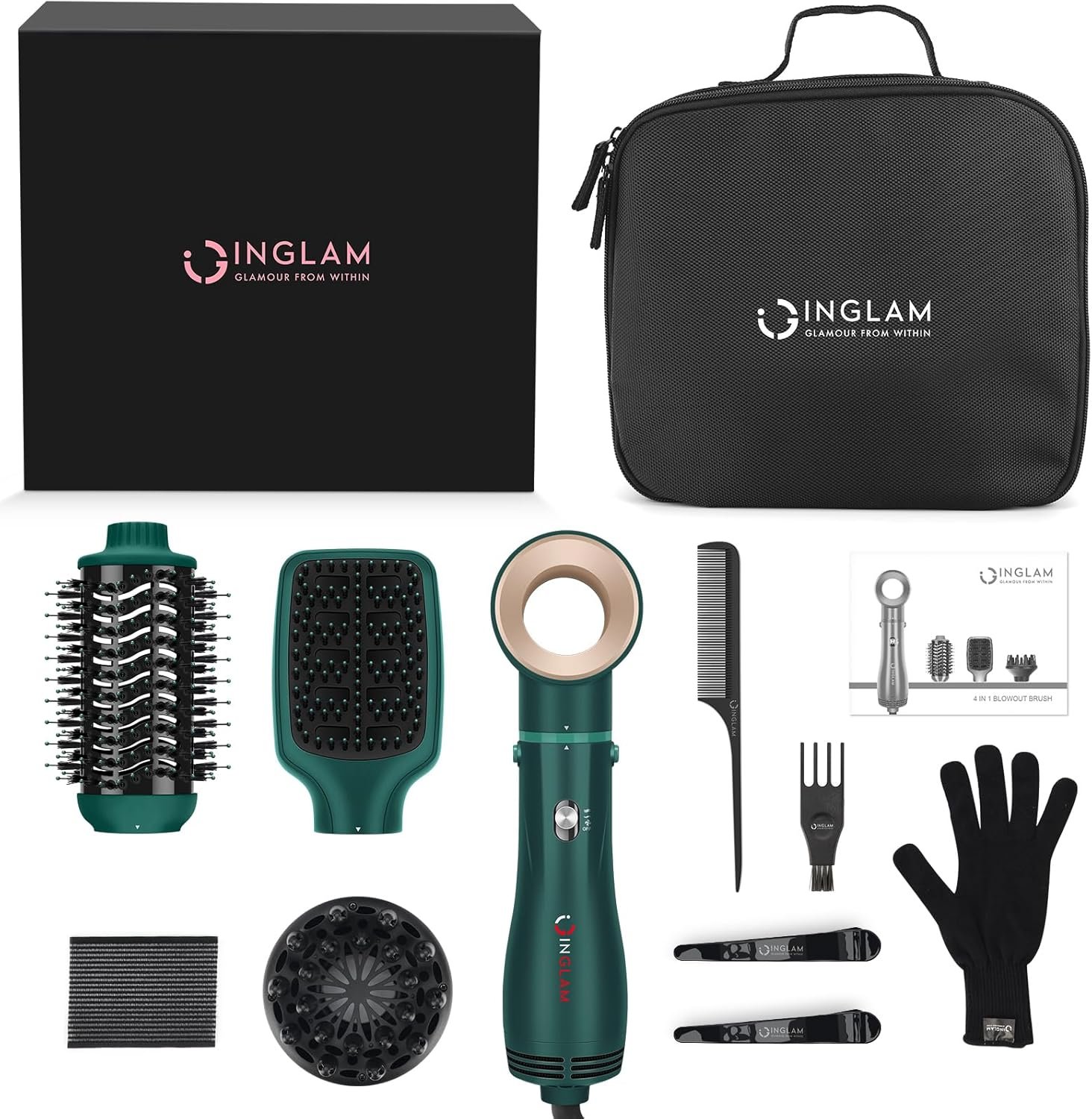 Multifunctional Hair Dryer Brush – The IG INGLAM 4 in 1 blowout brush is a multifunctional hair dryer brush that has four different-size brush heads to satisfy your styling needs. Served as a dryer, volumizer, curler, and straightener, it allows you to achieve gorgeous hairstyles efficiently, saving you time and money.