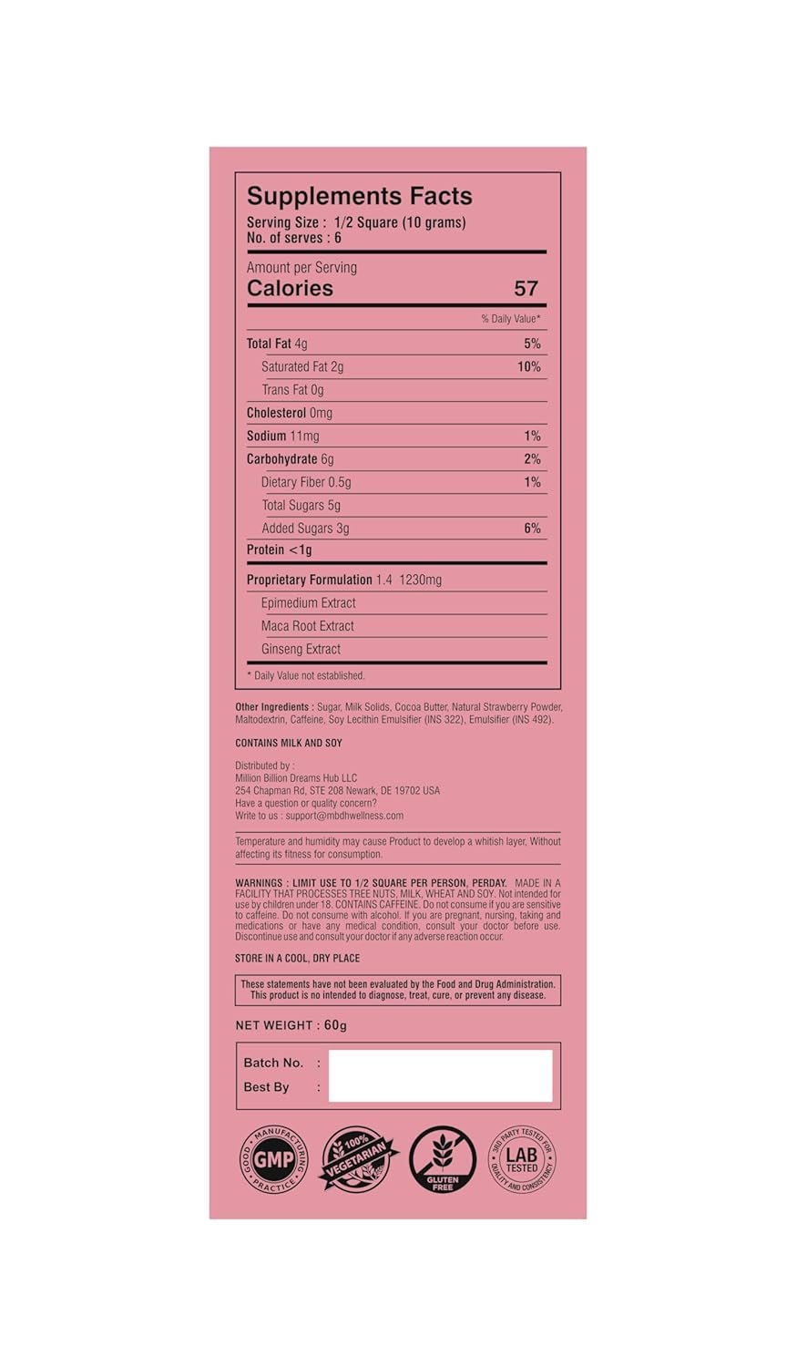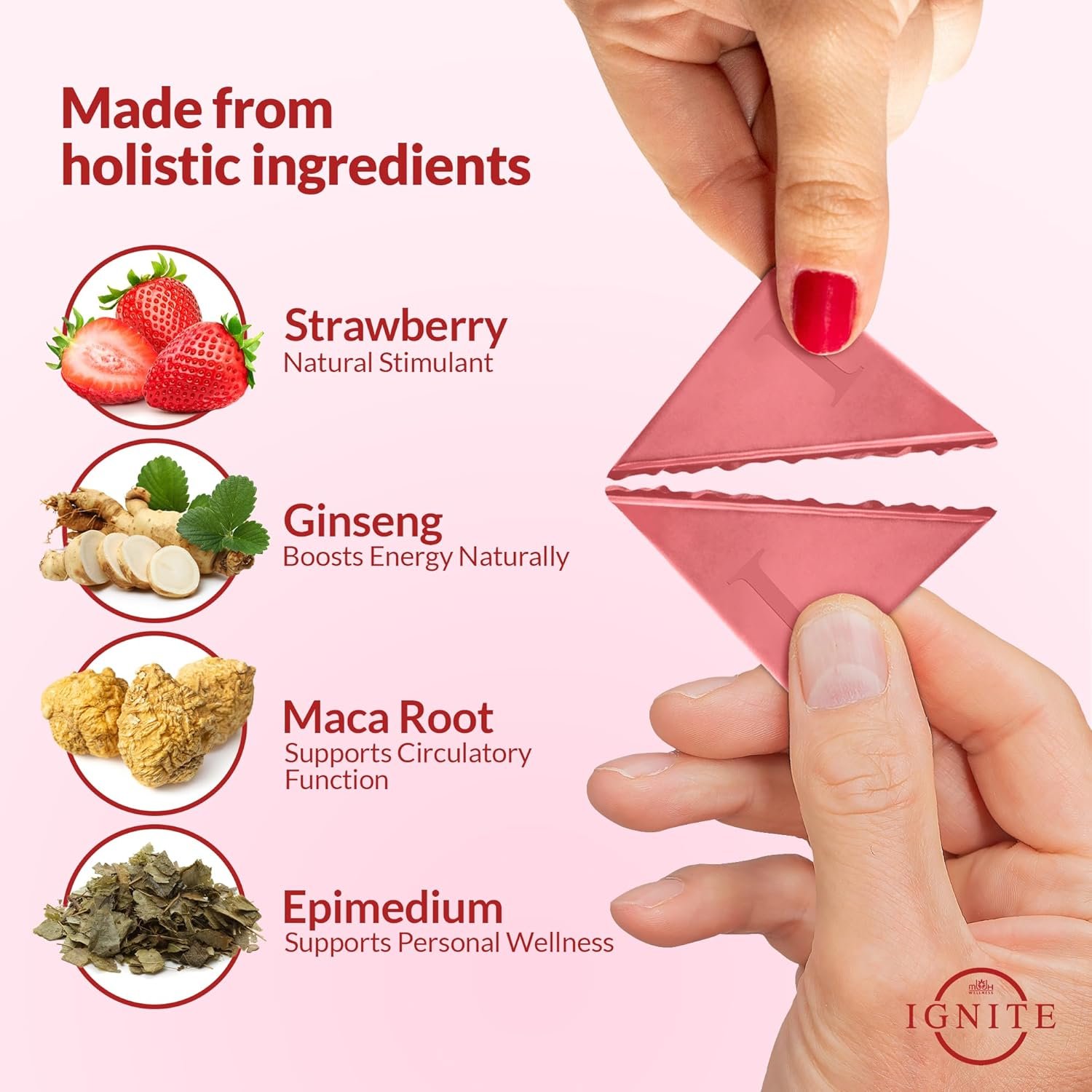 Infused with Selected Ingredients: Ignite’s chocolate squares are thoughtfully enriched with natural ingredients. These additions make every bite more enjoyable, crafted to delight both men and women.