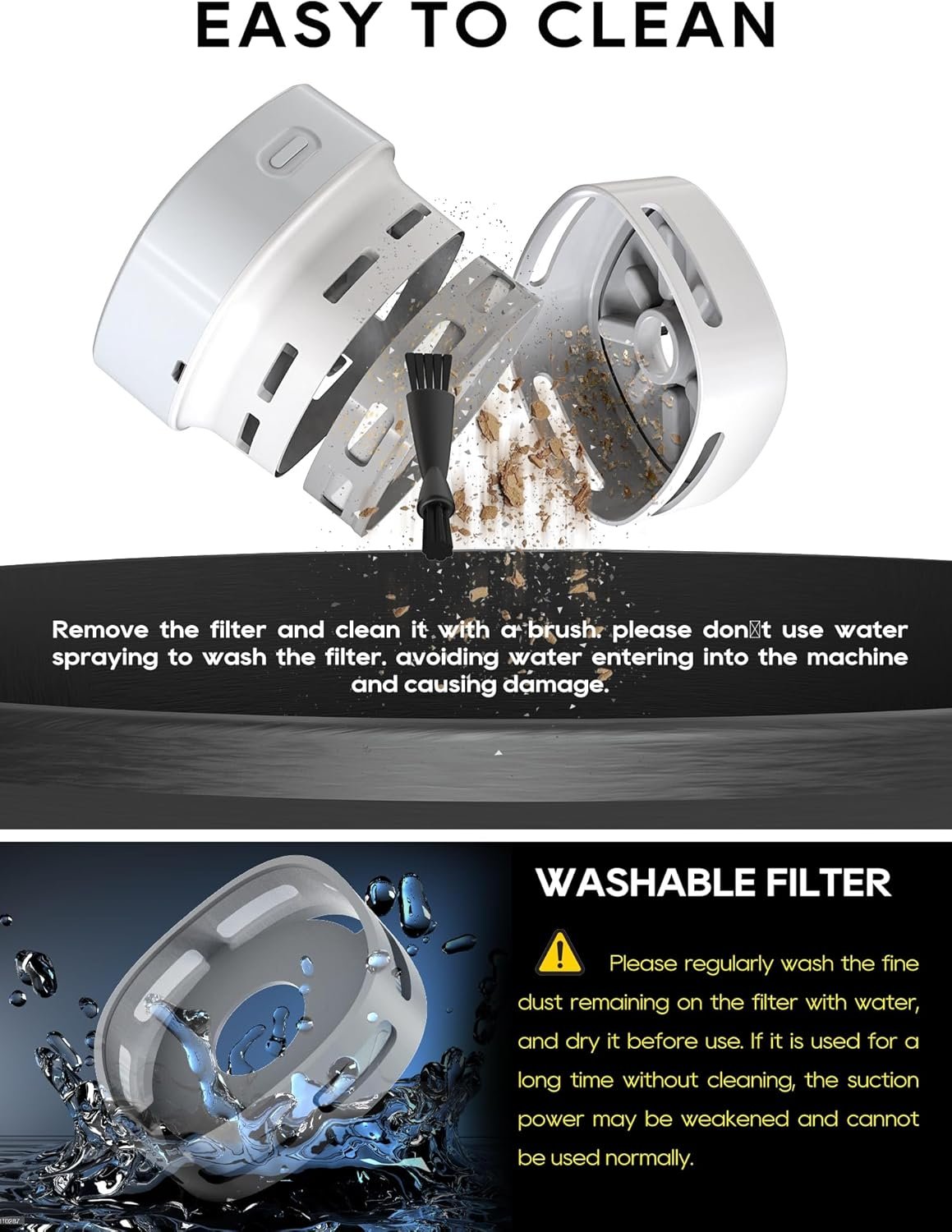 [High Suction and Low Noise]Your mini desk vacuum cleaner spins at up to 13500 rpm compared to 6000 rpm of other cleaner, which means your table vacuum cleaner has a strong suction than others and will be your a great little cleaner helper. Yet, it is quiet enough for you to read or sleep while it cleans.