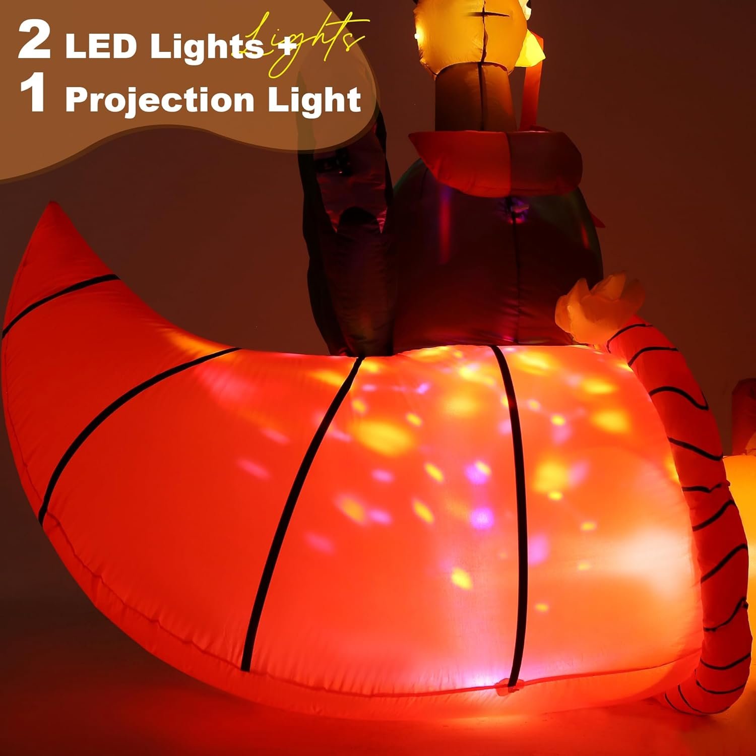 Perfect Size and Easy Setup – This 6FT tall inflatable turkey sitting on a cornucopia is big enough to lighten up the yard, but not crazy big. It’s very easy and safe for kids to help decorate! Just plug it in, stake it down and watch it transform in minutes.