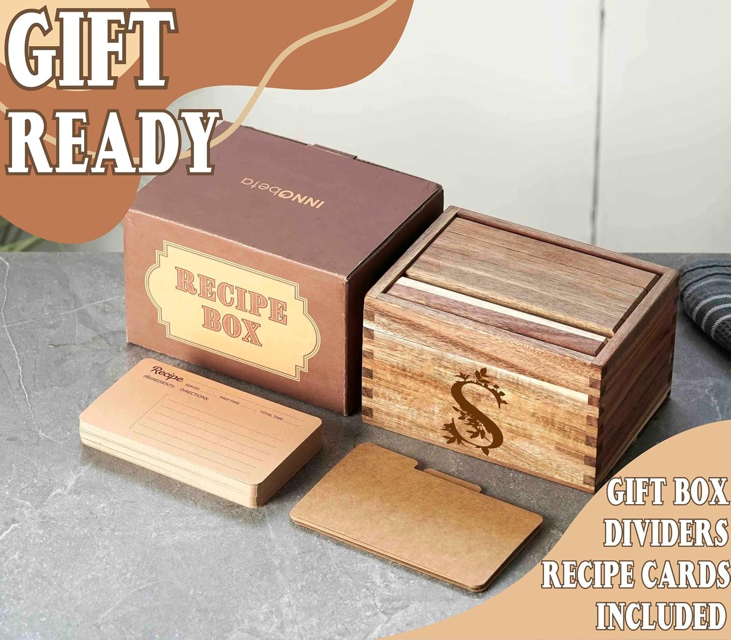 Gift Ready. The recipe box also comes with a elegant package. it’s perfect for the women, mom as birthday and Christmas Gifts.