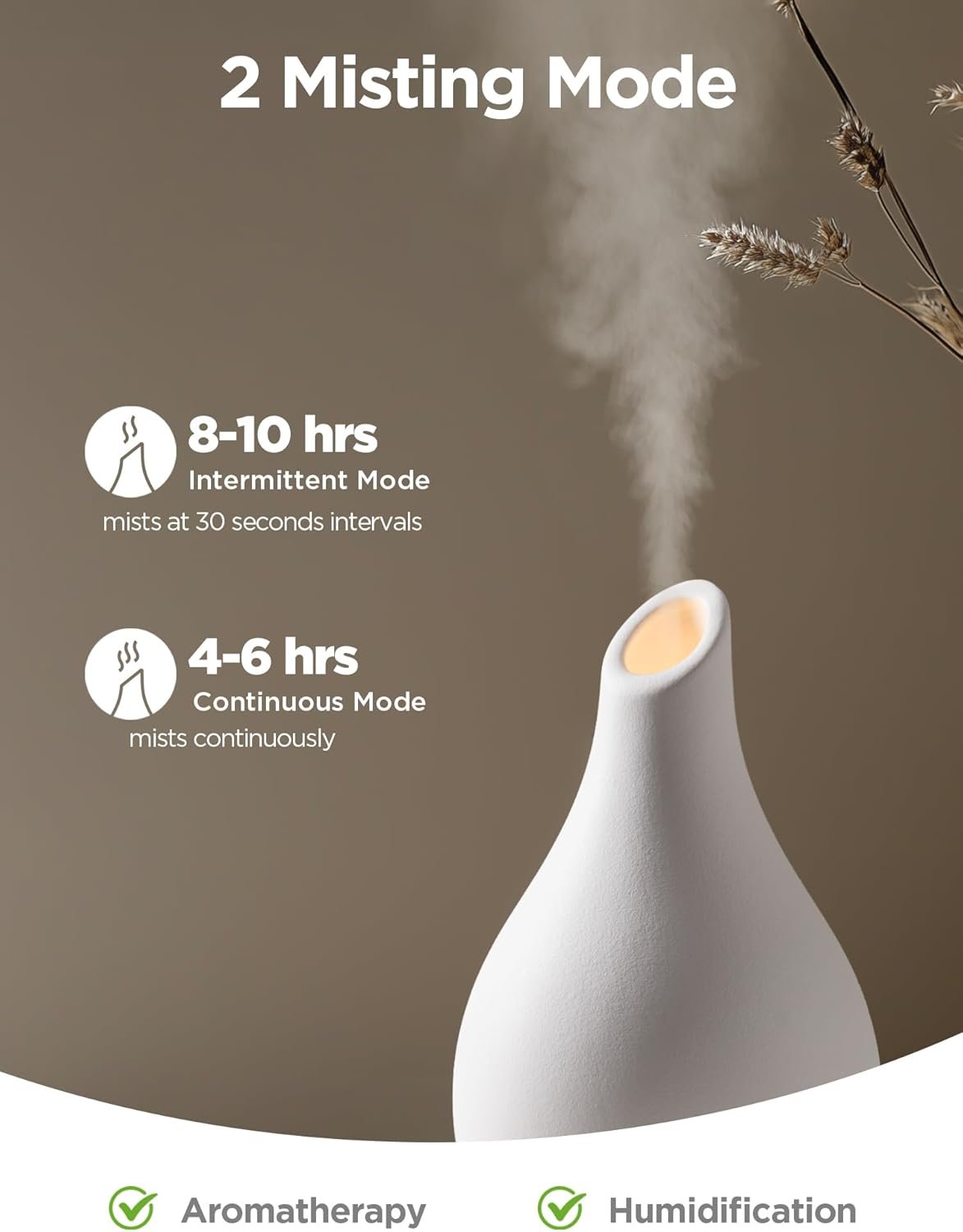 Ceramic Stone Diffuser: Indulge in the perfect fusion of form and function with our InnoGear handmade ceramic oil diffuser, featuring a handcrafted ceramic cover that resists fingerprints and wipes clean effortlessly. The elegant, organic design blends seamlessly with any decor style, while the high-quality PP material water tank ensures uncontaminated mist for your safety.