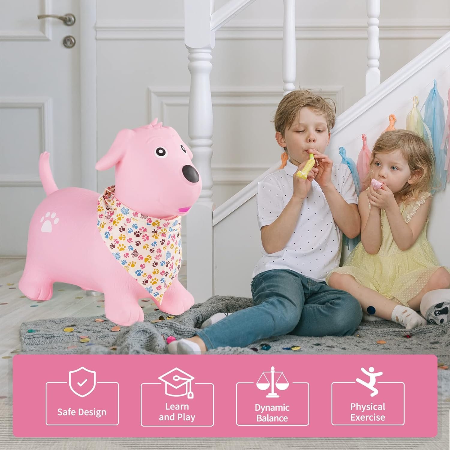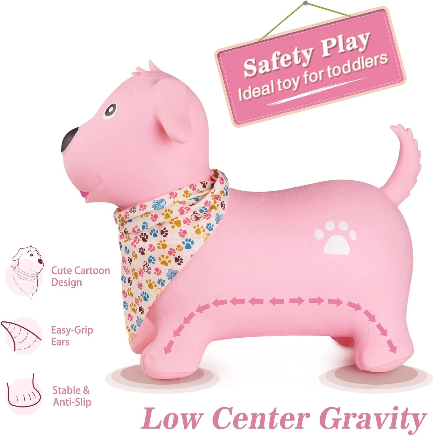 【 Unique and Cute 】: Bouncy dog with a brand new design. Using children’s favorite biomimetic dog design, with a soft body, cute expression, and comfortable materials, children must love such a good companion! Children under 3 years old should be under direct supervision of an adult.