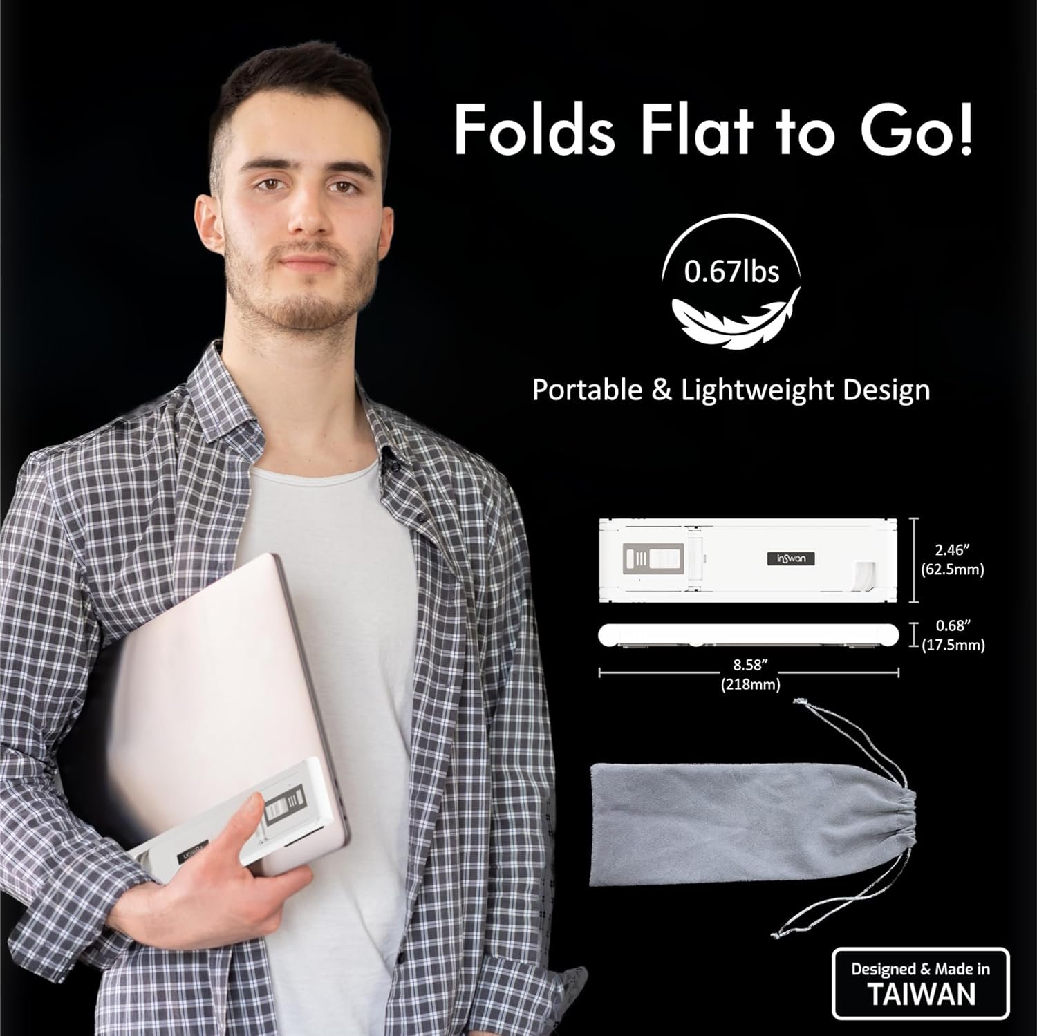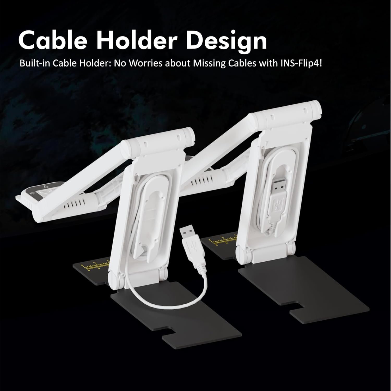 [Compact, Foldable & Cable-Ready] Exemplifying lightness and convenience, the INS-Flip 4 weighs a mere 0.67 lbs, and its dimensions are 8.58” x 2.46” x 0.68” (218 x 62.5 x 17.5mm), akin to a compact handheld pencil case. The built-in USB cable is securely housed with a cable holder design, preventing loss or loose connections. The included carry bag enhances portability, facilitating effortless access and storage.