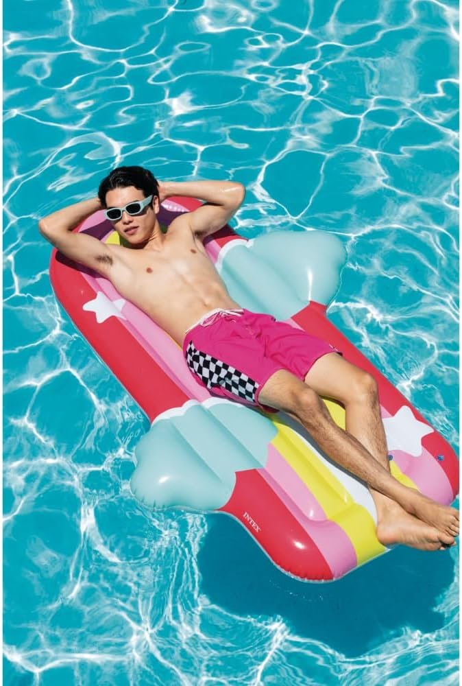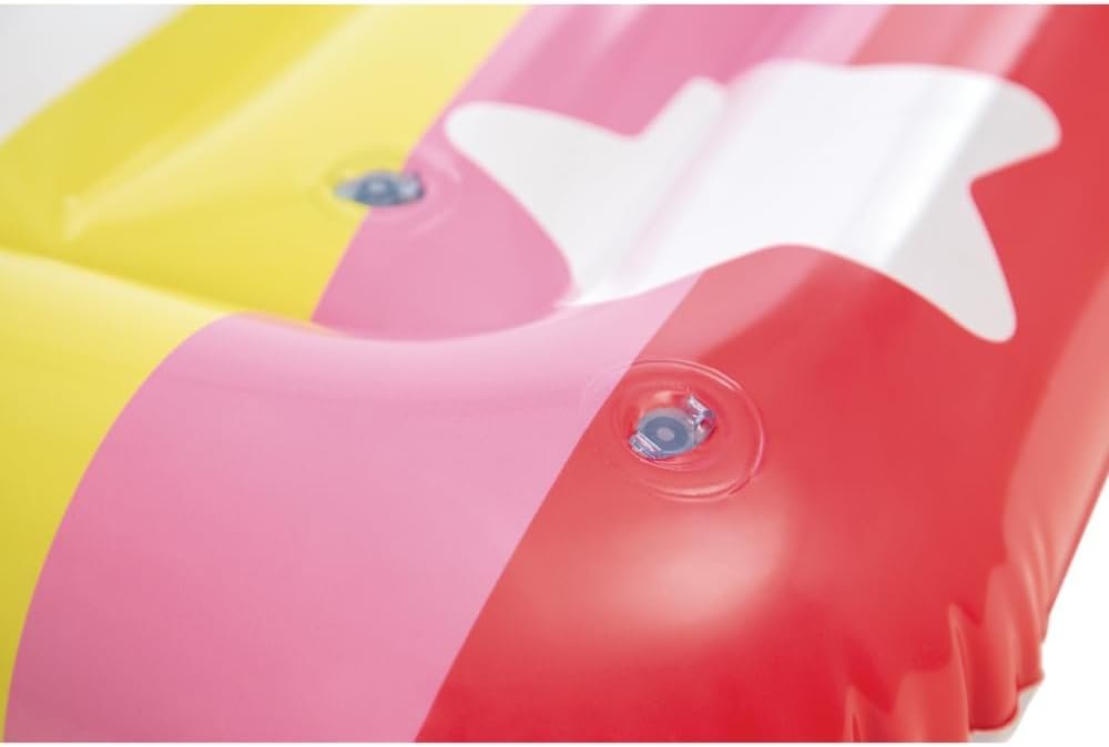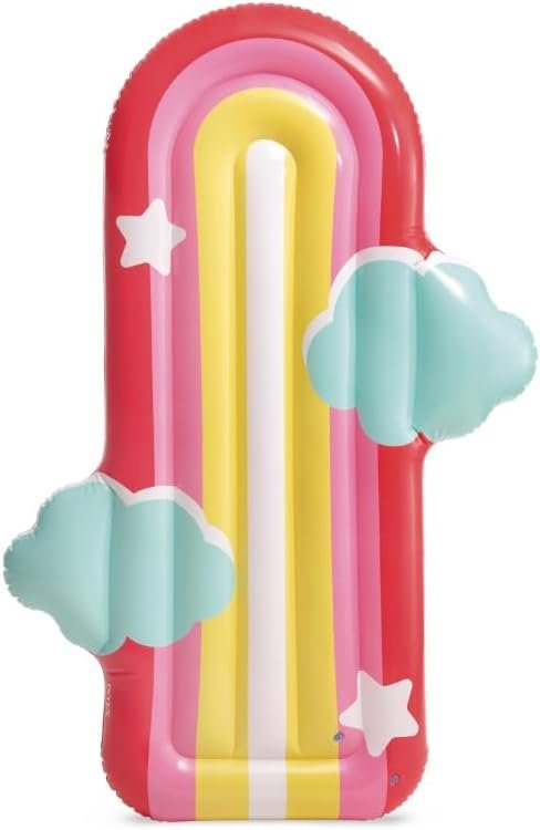 Drift into sunny skies with this oversized Rainbow Cloud Pool Float! Measuring 72 inches by 52 inches, this float offers ample space to stretch out and relax. Shaped like a fluffy white cloud with a bright rainbow arch, it brings a cheerful vibe to any pool day. Perfect for lounging, sunbathing, or snapping fun summer photos.