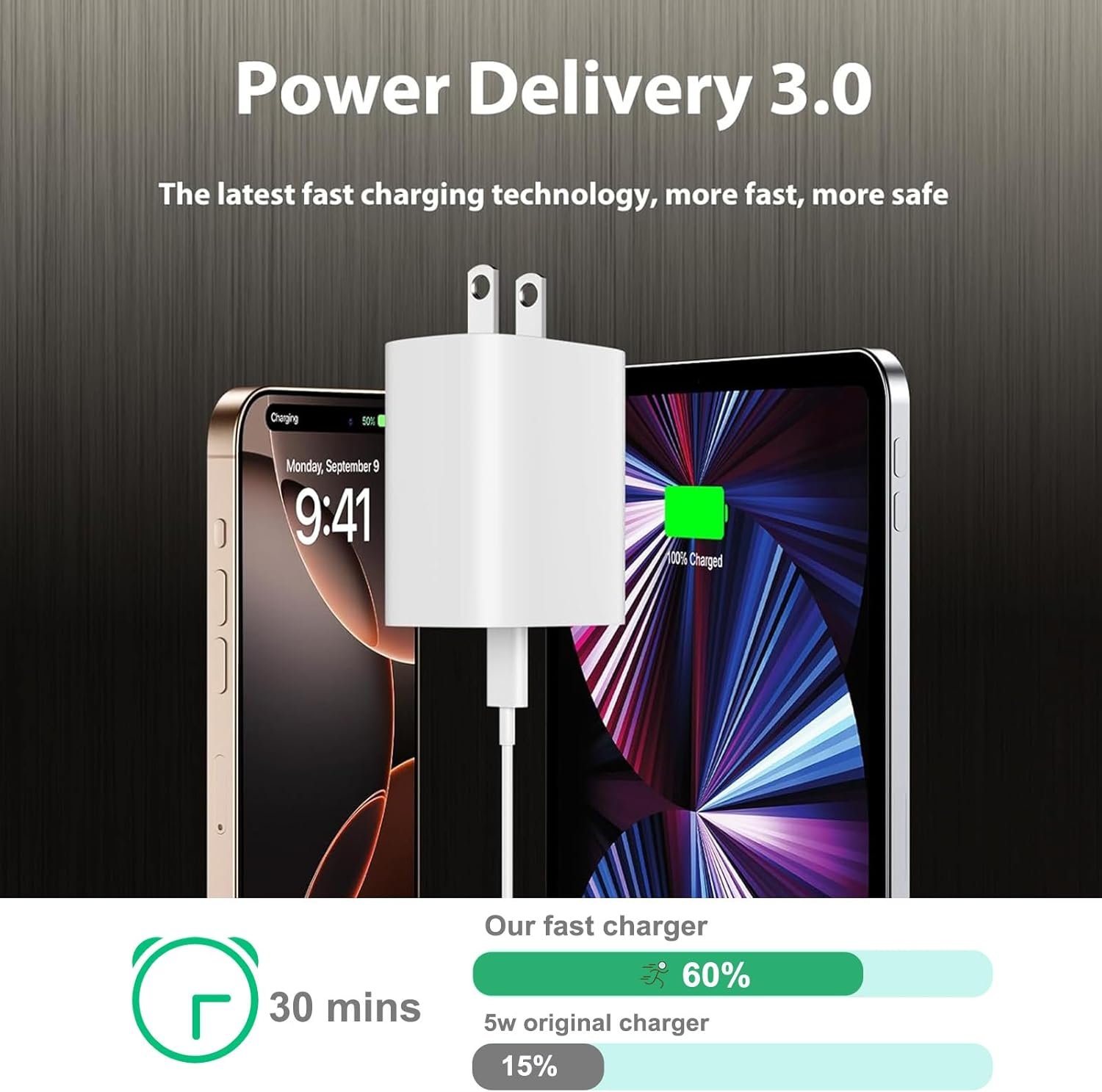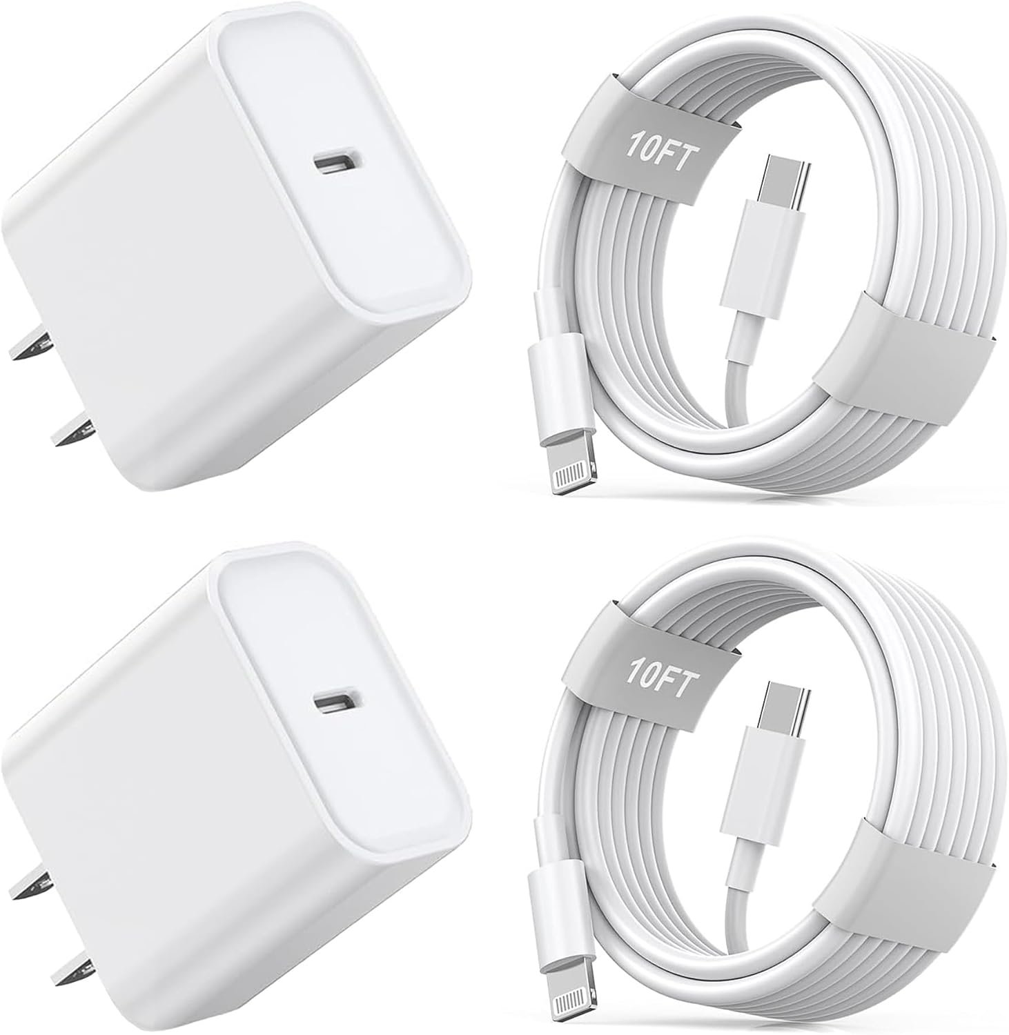What You’ll Get:2pack usb c apple fast charger block + 2pack 10Foot MFi Certified Lightning Charger Lightning cord