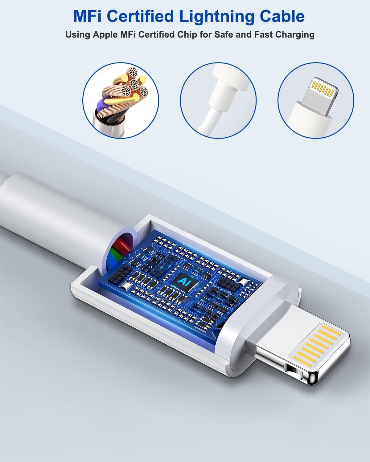 【Safe Certified & Efficient Quick Charging】2pack fast charger iphone and 2pack usbc to lightning cable have built-in intelligent protection system, can protect against over-current,over-heat,over-voltage,over-charging,short-circuit and moisture,fully protect your life and iPhone/iPad/iPod.