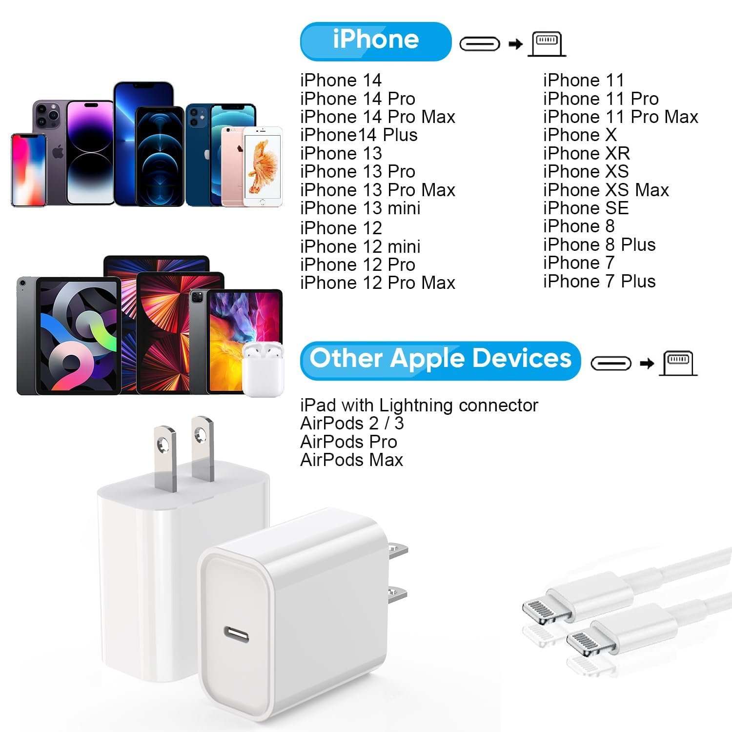 【2pack Lightweight & Compact Apple Fast Charger 】 The rapid usbc pd wall charger works for iPhone 14/14 plus/14 pro/14 pro max/13/13 pro/13 pro max/12/12 pro/12 pro max/12 mini/11/11 Pro/11 Pro Max/XR/XS Max/XS/X/8 Plus/8 , iPad Pro, AirPods Pro, and charge iPhone 7/7 Plus/6s/6s Plus/6/6 Plus/SE/5s/5/5c at standard speed.