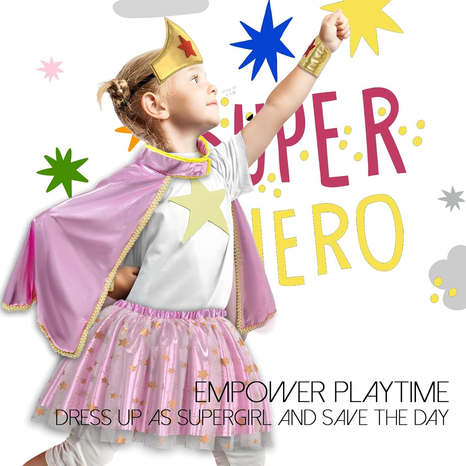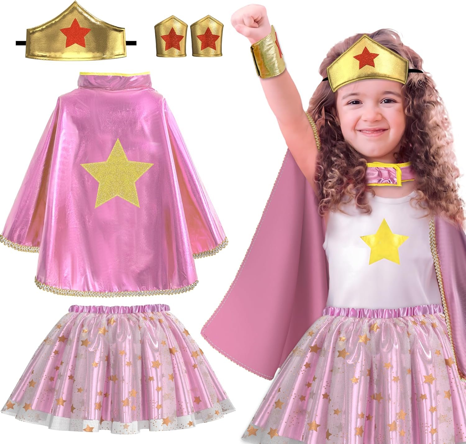 Kids-Superhero-Capes-Costumes for Girls-Dress-up Clothes Super Hero Capes Wonder Star Tiara Cuff and TuTu as Xmas Party Gifts