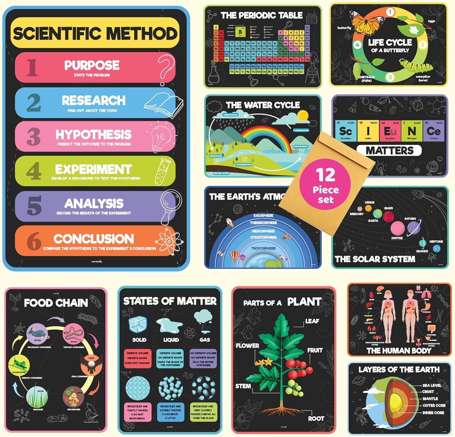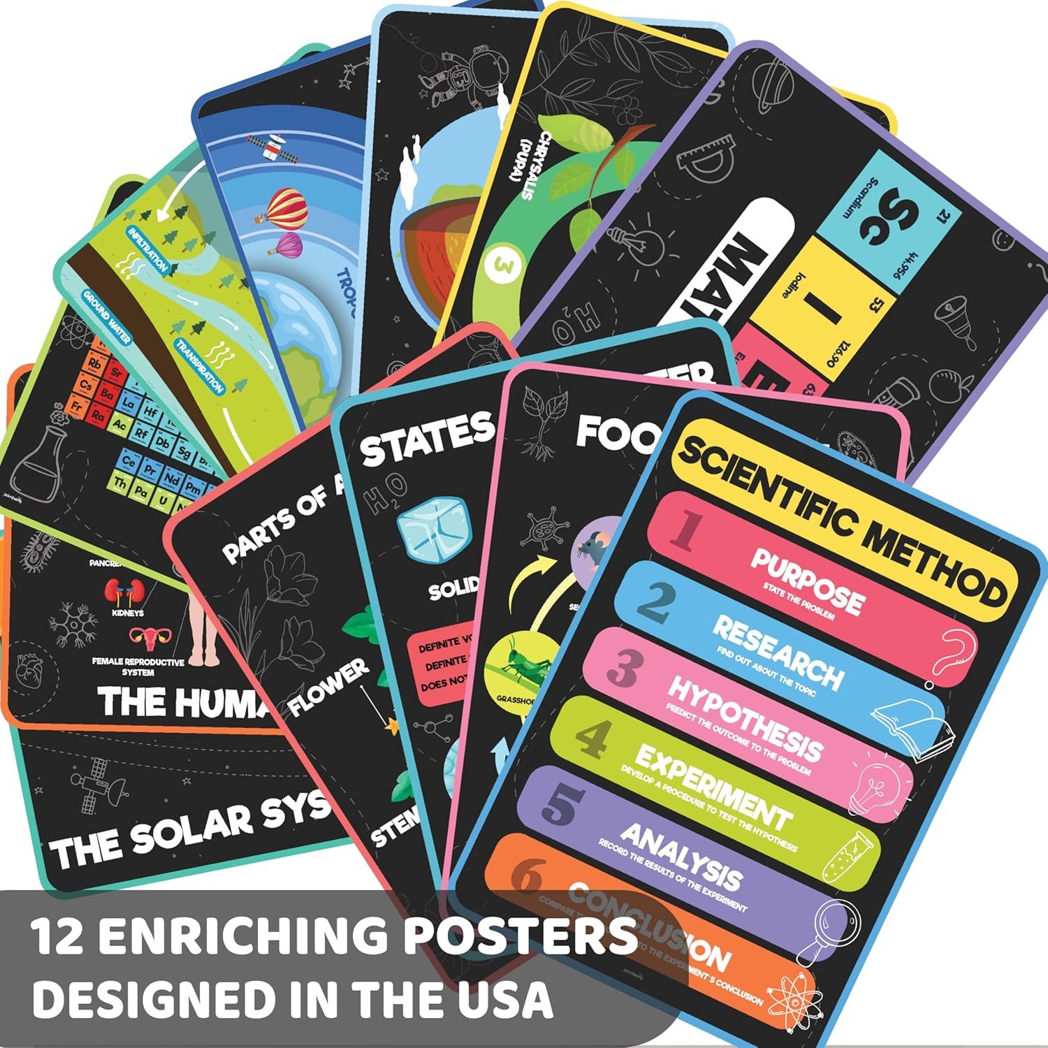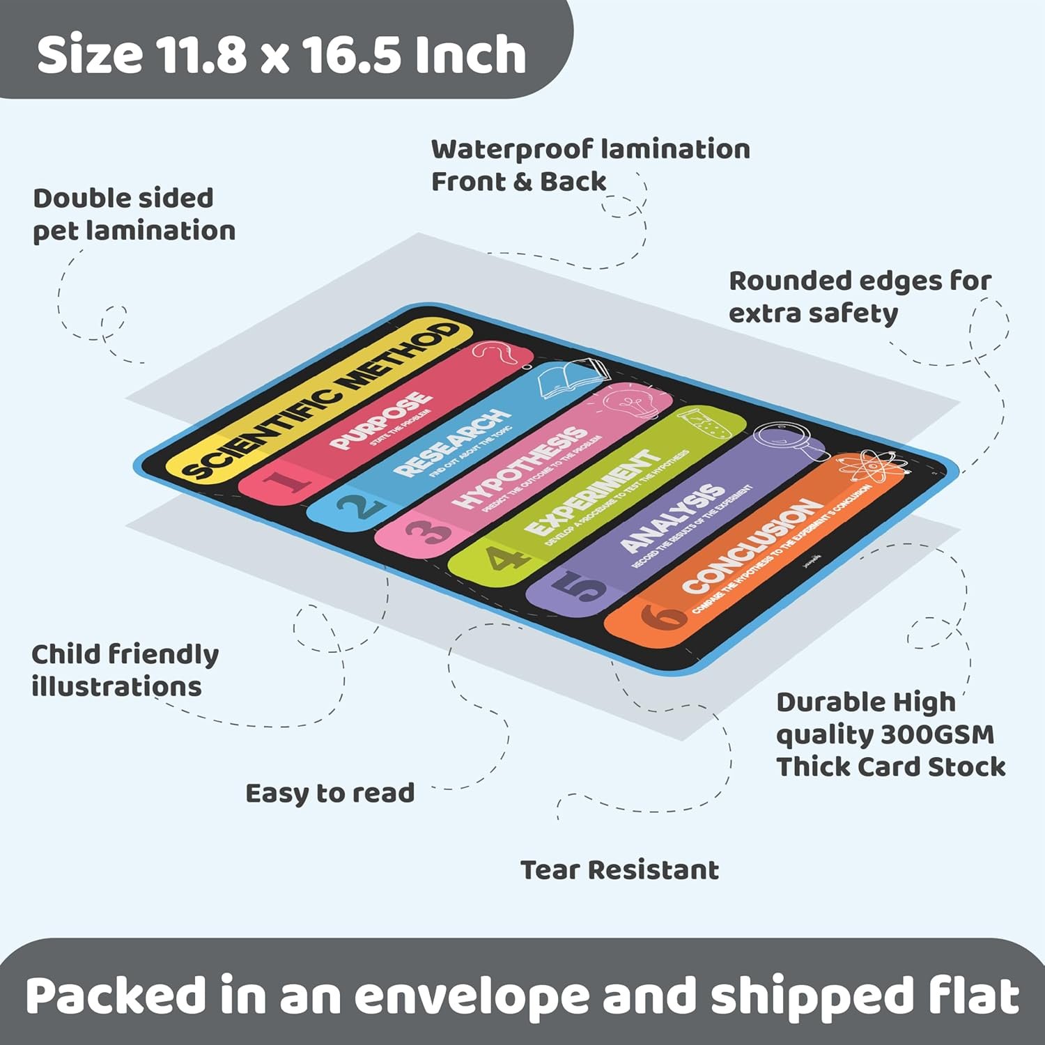 LARGE 11.8 x 16.5 INCHES: These large science classroom posters will enhance your students’ understanding of basic science concepts. These science decorations for classroom are high quality tear resistant posters made with DOUBLE LAMINATED THICK CARD.