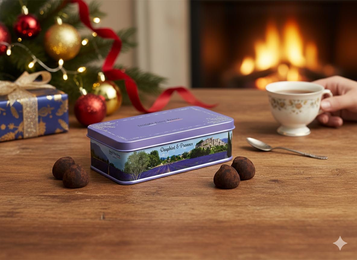 This beautiful Straight from France gift contains 20 fine cocoa truffles made by Jacquot, one of France’s most reputable chocolate maker. These Truffes au chocolat as they are called in France are creamy and rich. Jacquot is a French chocolate manufacturer founded by Jules Jacquot in 1920 in Troyes, France. Focused on the selection of the best cocoa beans, Jacquot is nowadays synonymous with quality and is among the most prestigious chocolate brands in the country. This chocolate box is the perfect Holiday gift, chocolate gift for a birthday, Christmas, Mothers day, Valentines day or Fathers day. It is a great thank you gift, get well gift or sympathy gift as well. These chocolate candies come in metal gift tin designed after the region of Provence and is imported straight from France.