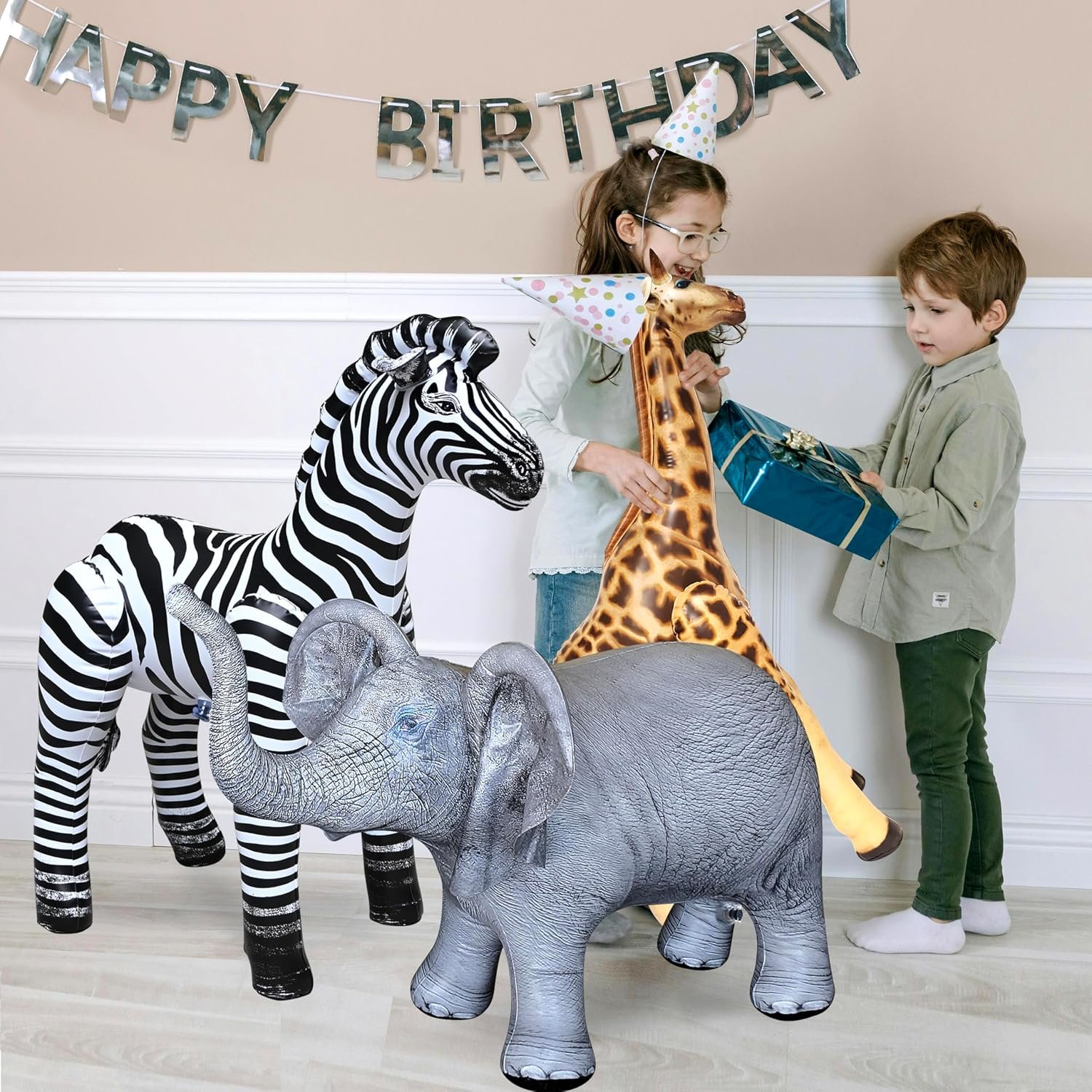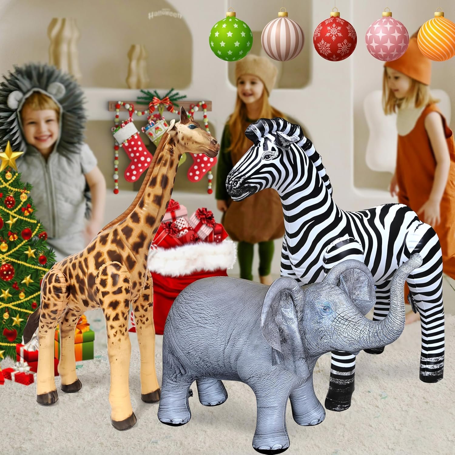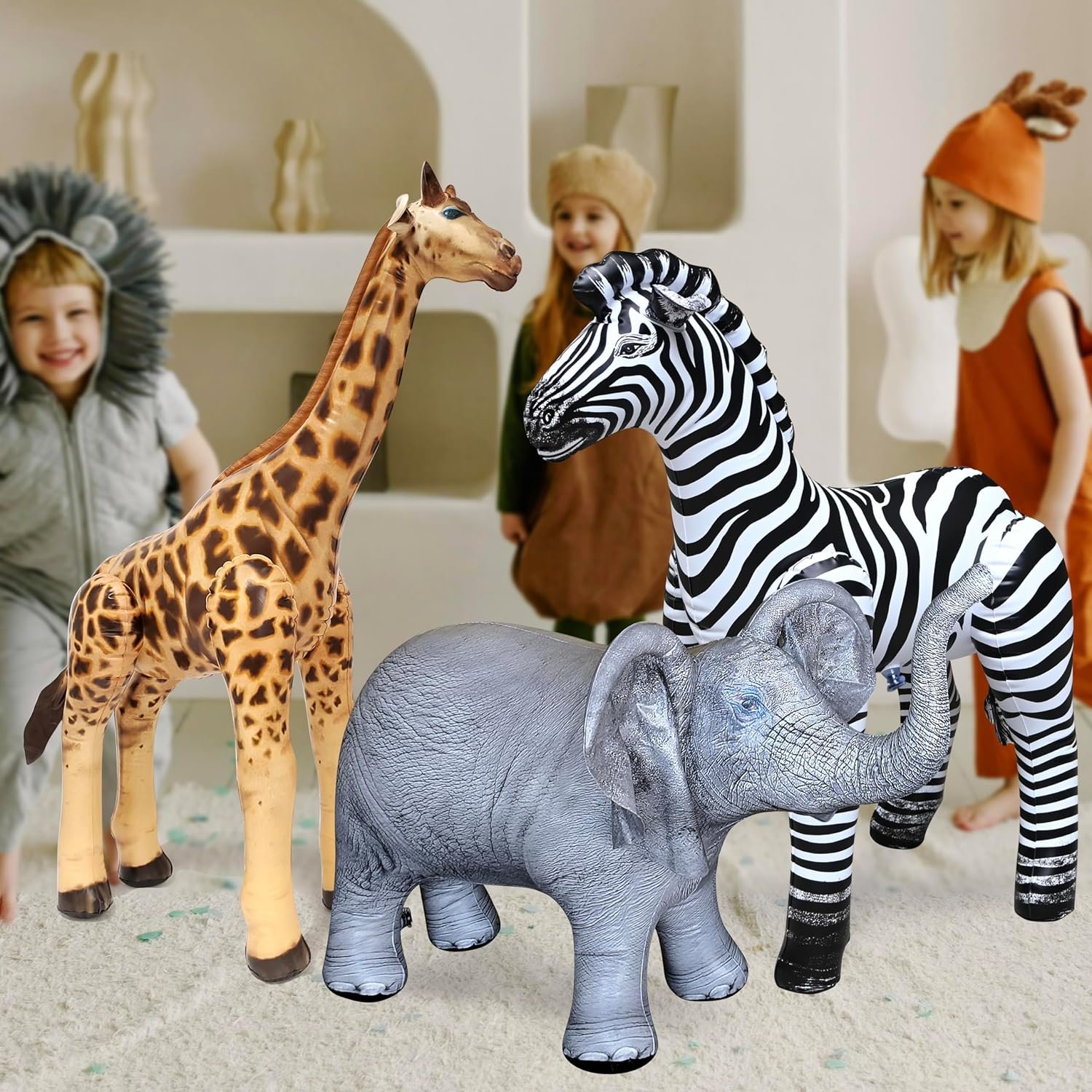 Customers find the inflatable animals look realistic and are well-made, with thick plastic construction that holds up to rough handling. They work great for jungle-themed parties and are particularly suitable for farm-themed events, with one customer noting they’re ideal for children under 5 feet tall. While some customers say they inflate easily and are worth the money, others report issues with deflating quickly and consider them poor value. The animals receive mixed feedback about their size, with one mentioning they’re big enough for kids to ride on.