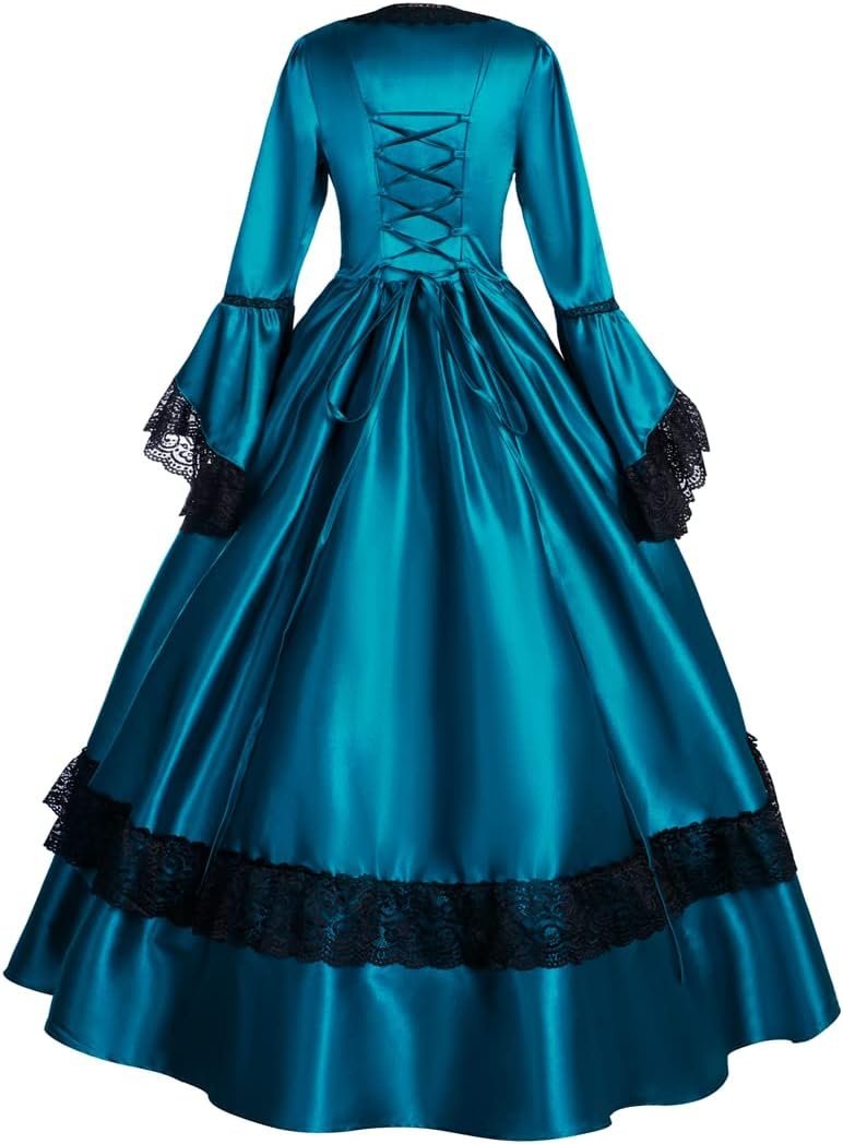 Women Victorian Ball Gown Dress Lace Long Sleeve Queen Marie Antoinette Costume Rococo Halloween Masquerade Dresses