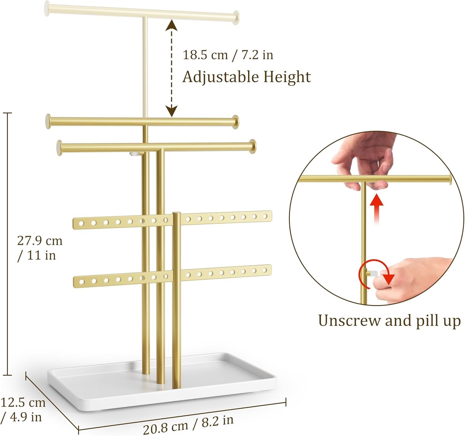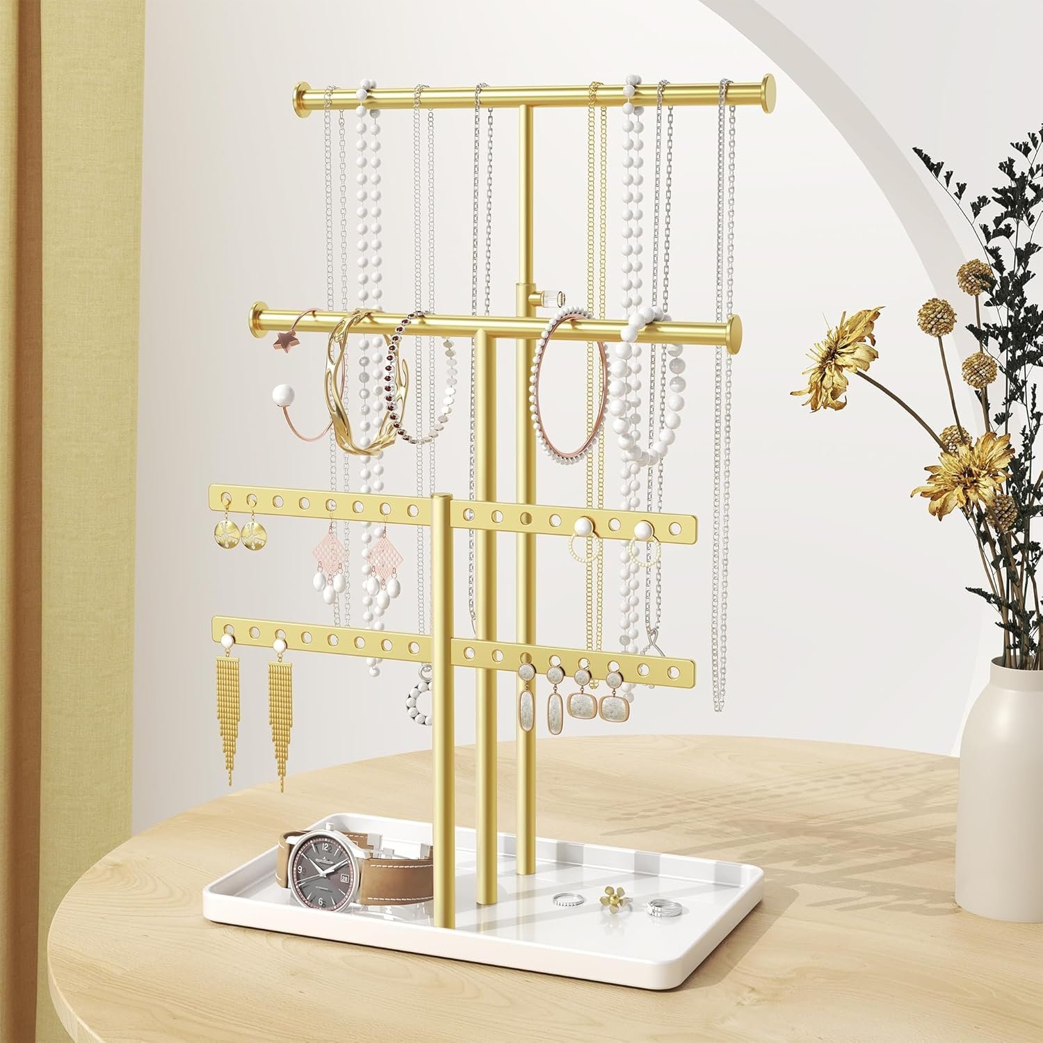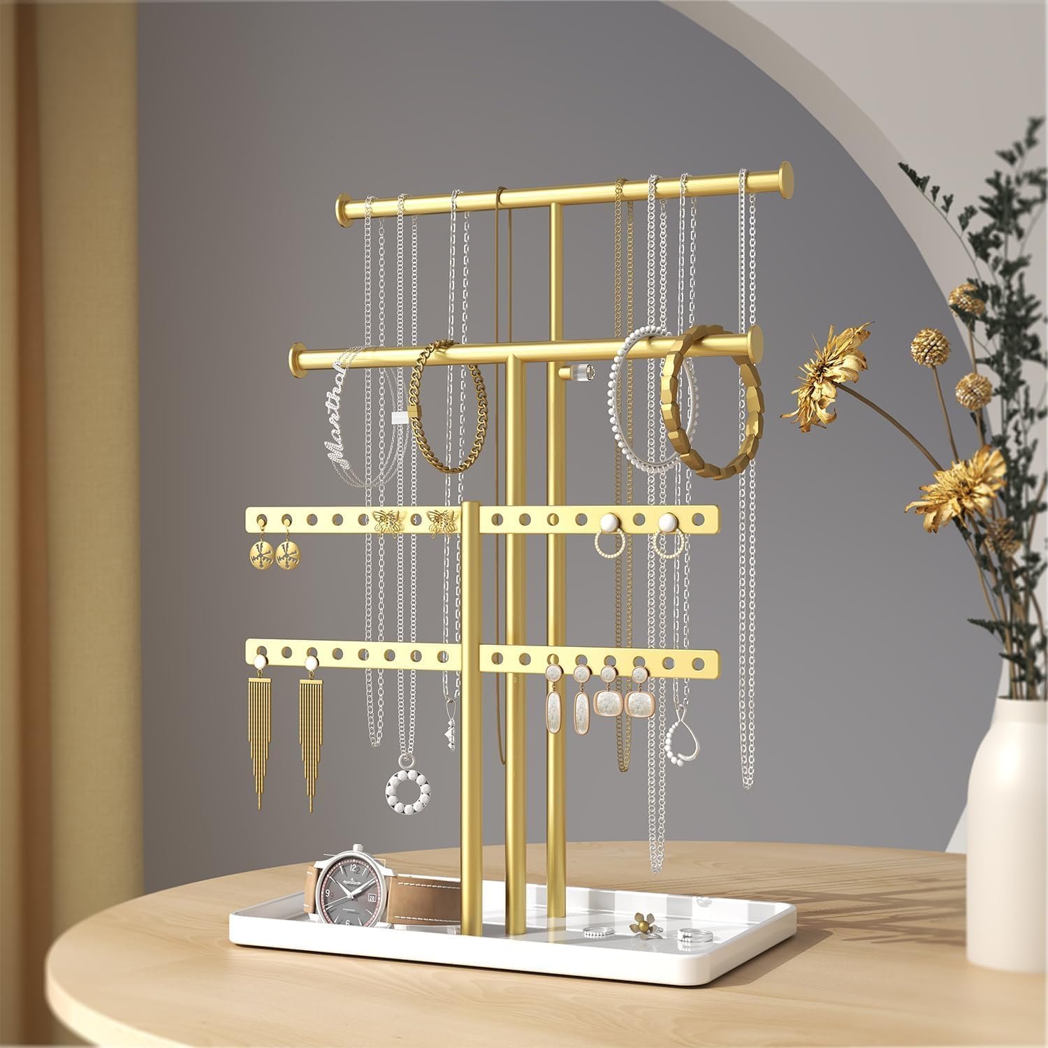 Metal Made Jewelry Storage Stand – Made of 201 stainless steel and aluminum, sturdy and durable.