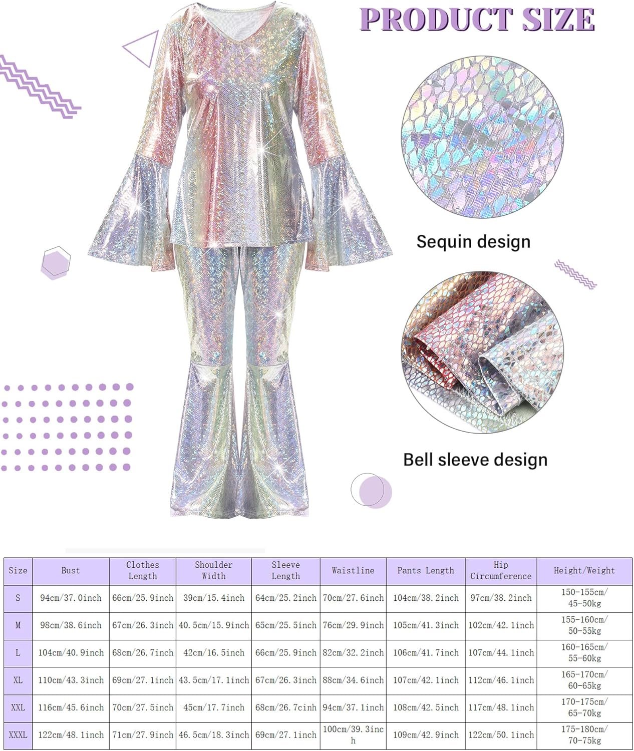 Customers find the 70s disco costume perfect for parties, particularly cruise-themed events, and appreciate its comfortable fit and great quality. The style receives positive feedback, with one customer noting the extra accessories complete the 70s look. The size and fabric thickness receive mixed reviews – while some find the material perfect, others describe it as very thin, and opinions about sizing are divided between accurate and too big.