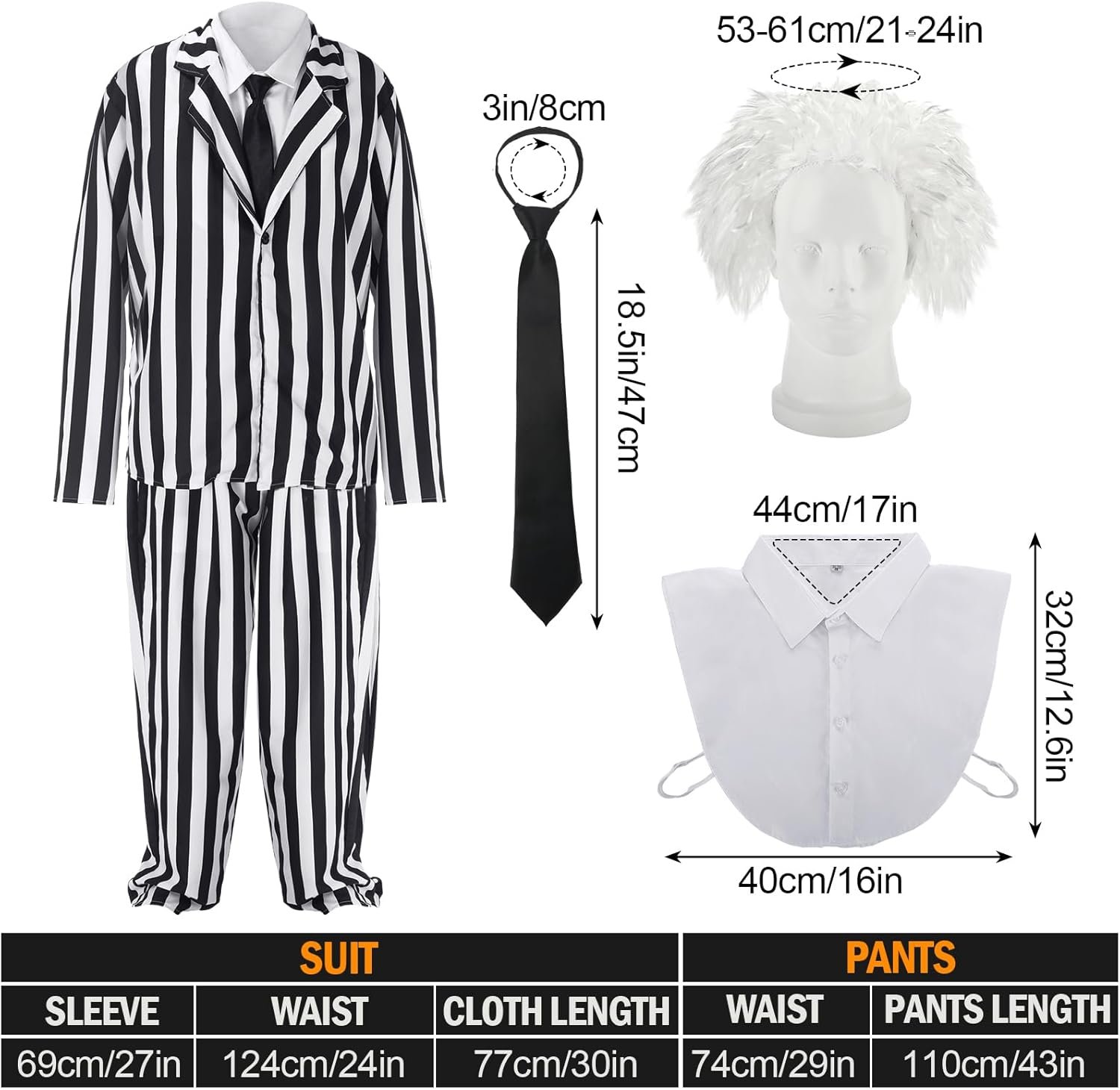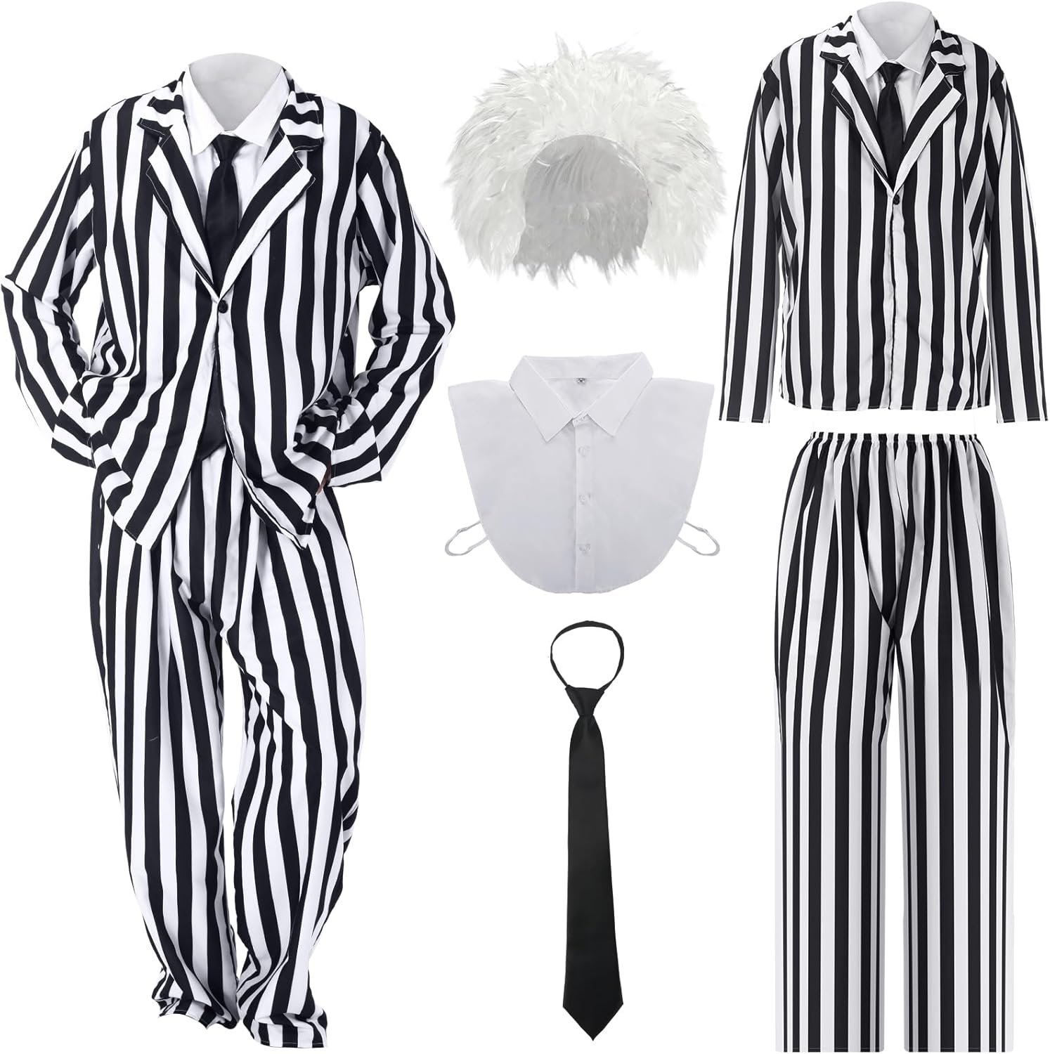 Be the first to review “Jeyiour 5 Pcs Black and White Striped Halloween Suit Costume Set with Suit, Pants, White Wig, Black Tie and Fake Collar for 80s Scary Movie Halloween Cosplay Party Outfit”