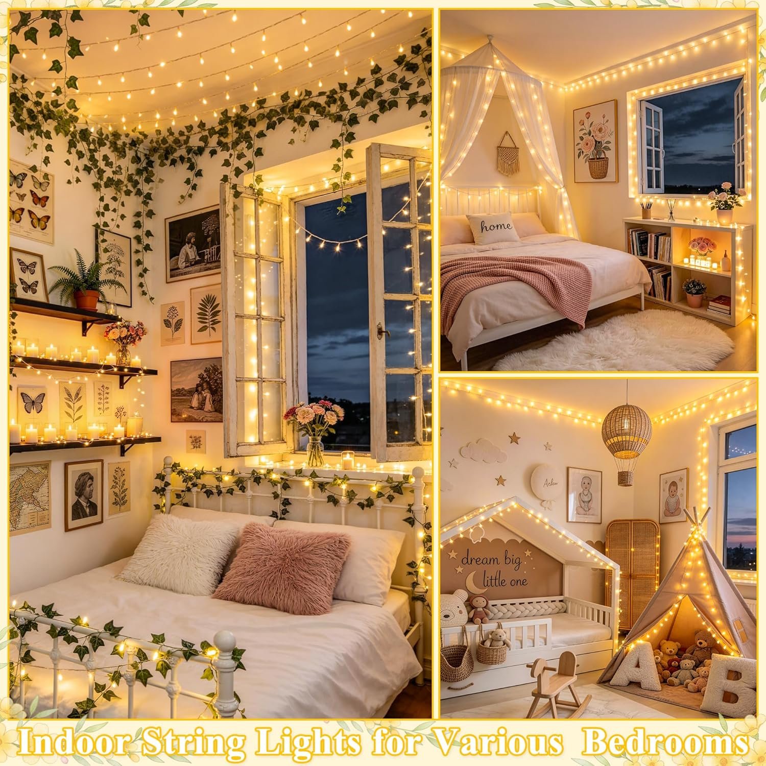 【Indoor String Lights for Bedroom】Our string lights have been praised as an perfect string lights for bedroom decor. Draping them around windows, headboards, or walls adds a layer of elegant and warmth. One box provides enough to adorn your entire bedroom, Using multiple sets of indoor string lights can instantly brighten and open up a space. Beyond bedrooms, they are versatile for living room, dining area, Children’s Rooms, reading nook, front door.