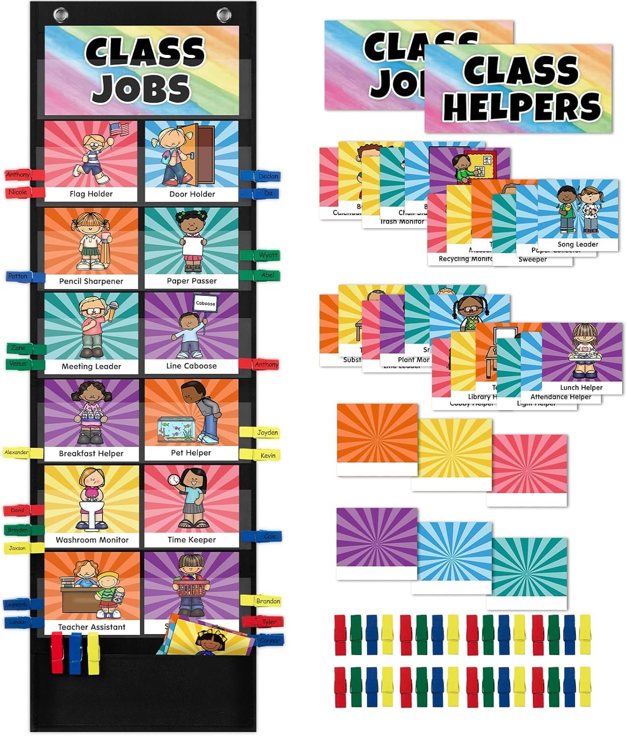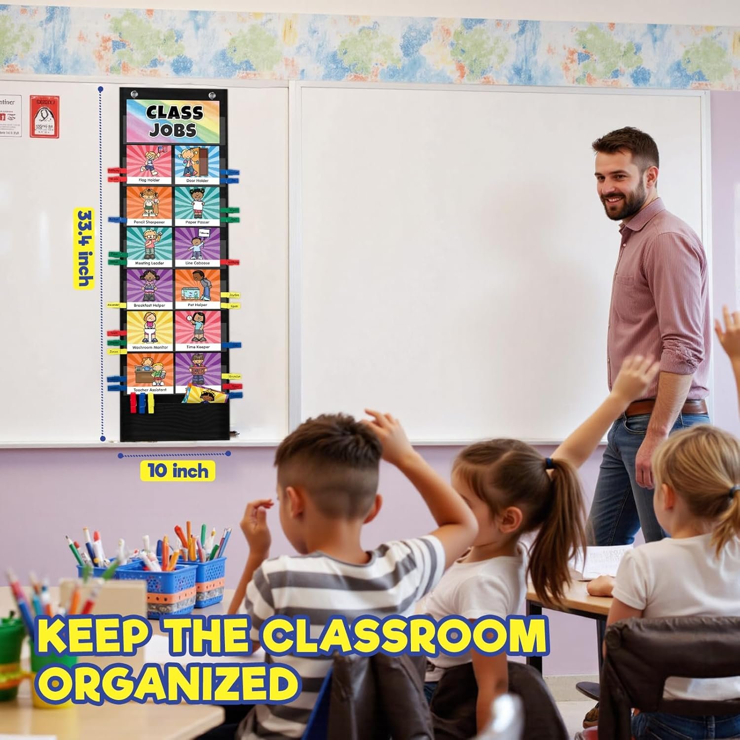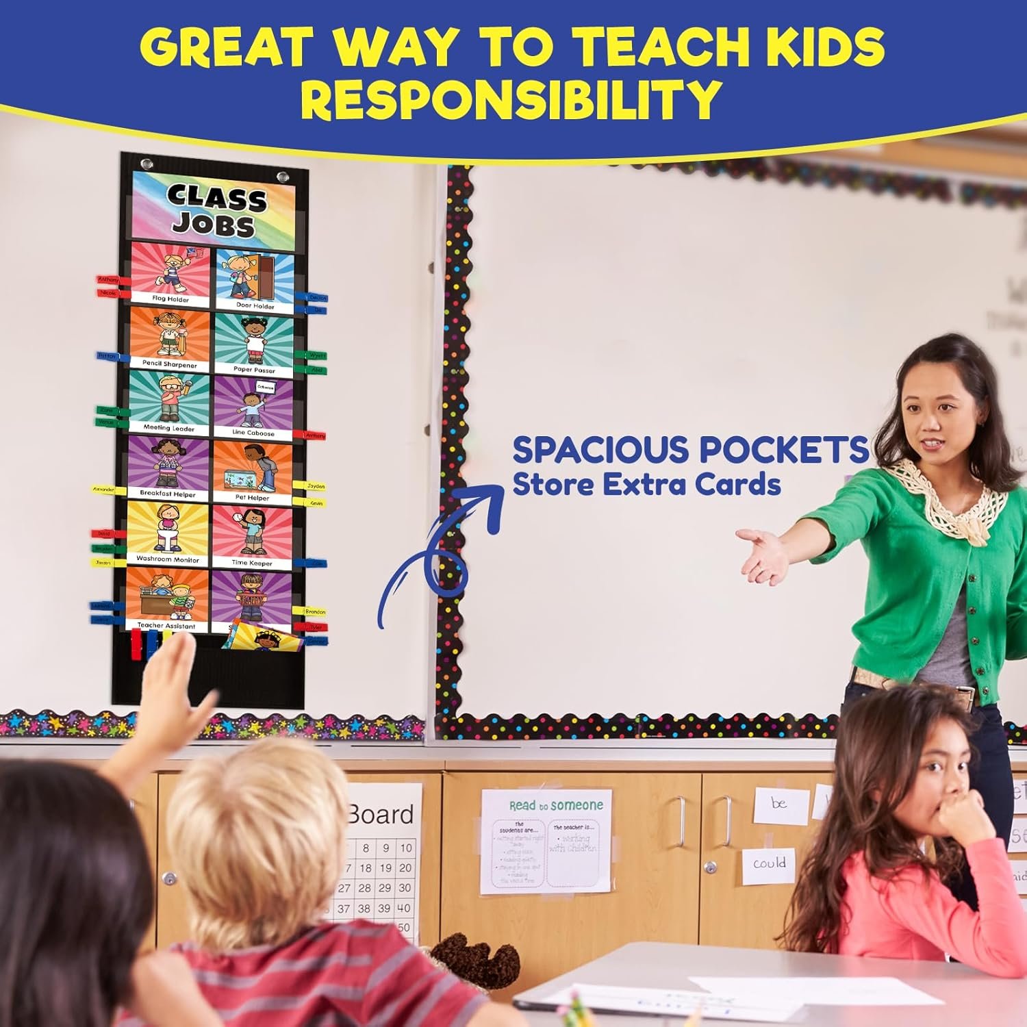 GREAT MANAGEMENT TOOL AND VISUAL DISPLAY – Keep your classroom organized! The class job pocket chart helps to get kids involved and teach their responsibilities. An absolute complement to your management system!