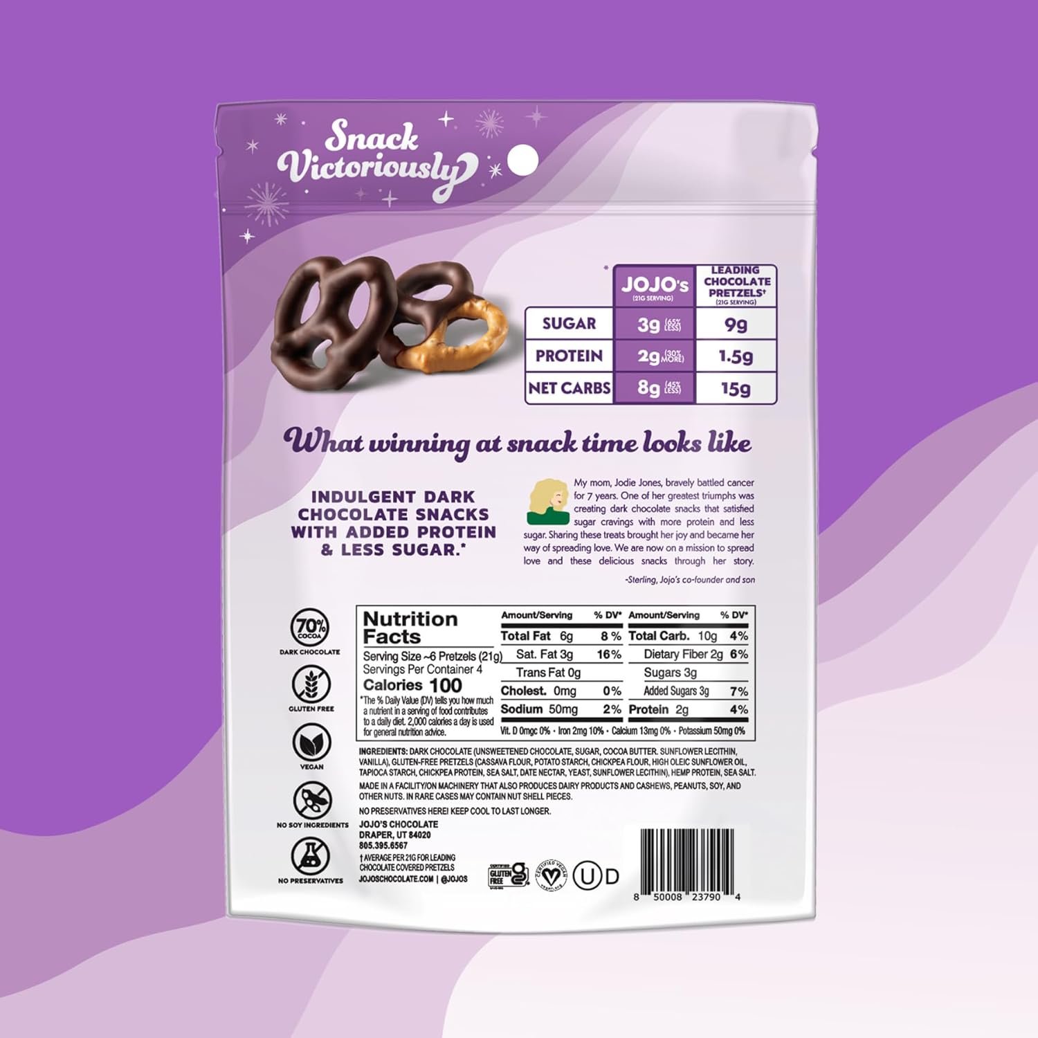 Be the first to review “JOJO’s Dark Chocolate Covered Pretzels, Gluten Free, Healthy Snack, Low Sugar, Low Carb, Non GMO, Paleo & Keto Friendly, Made with Plant Based Hemp Protein, Vegan (4 Count)”