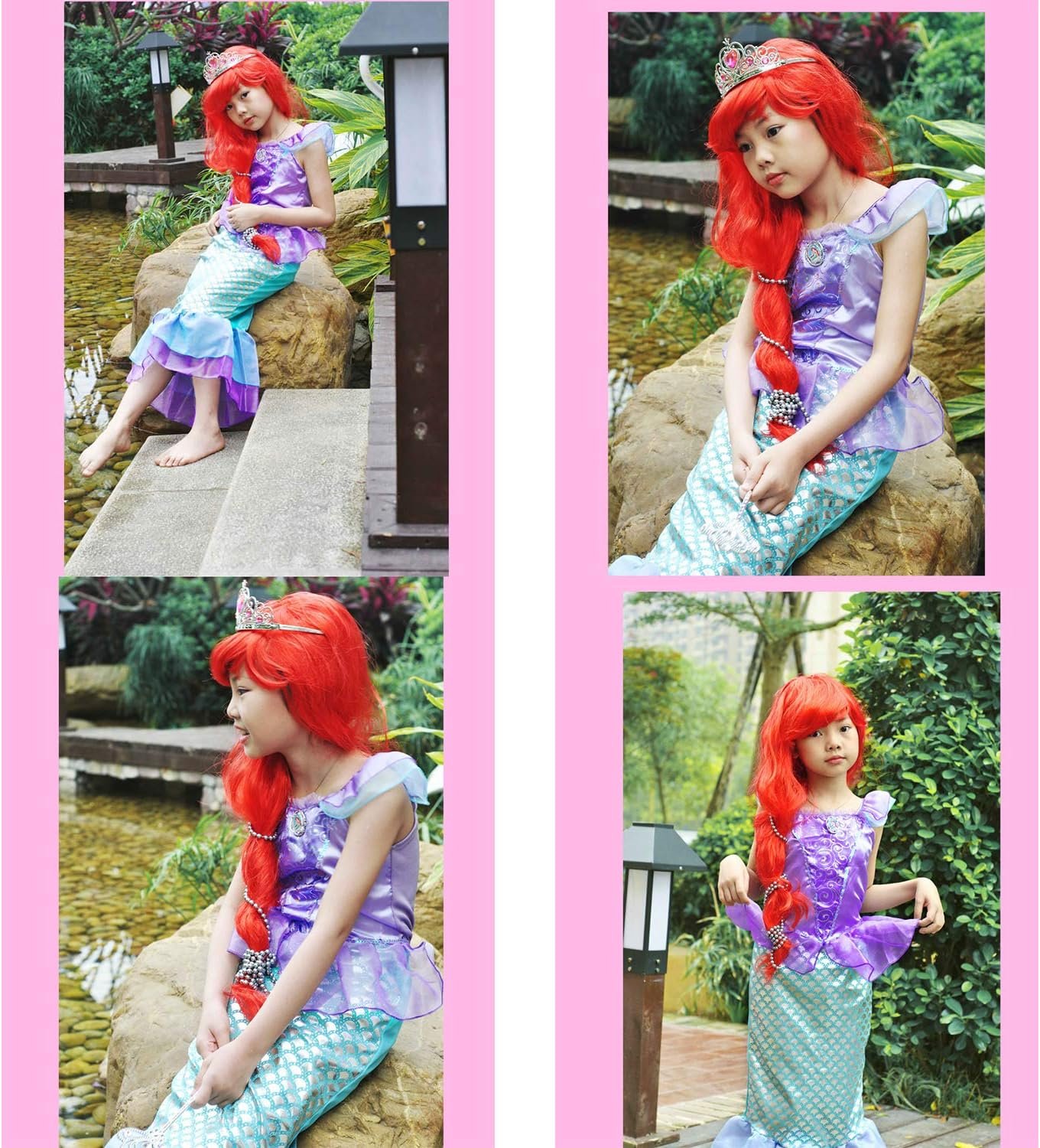 Every girl has a princess dream. This luxurious princess mermaid suit can fulfill the dream of a little princess. Beautiful skirt, red wig,purple crown and wand,each one can make girls happy.your little princess would be happy to scream when opened the gift bag, she would be a pretty princess.