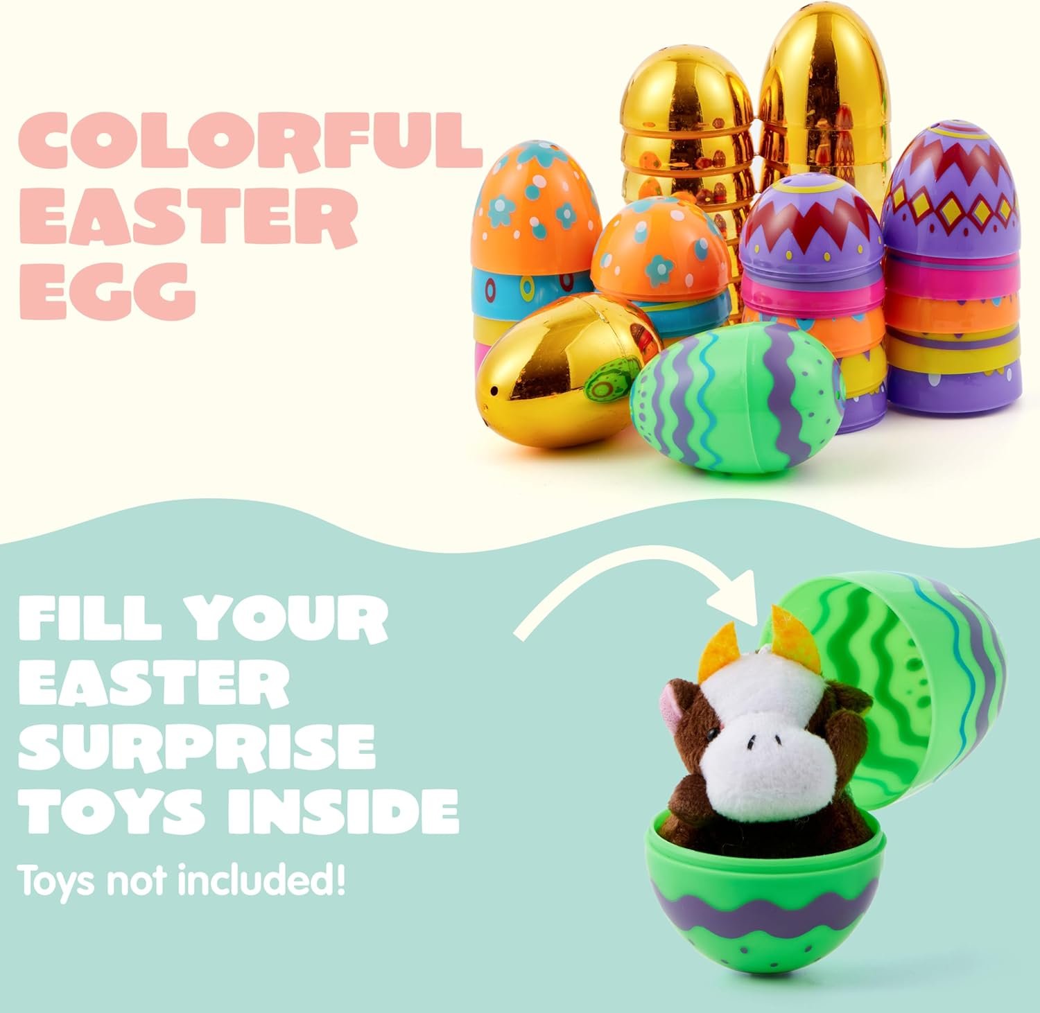 Detailed Design: Dive into a world of whimsy with our well-printed patterns Fillable Empty Eggs. Each Colorful Plastic Easter Egg adds an extra joy to your Easter decoration. Custom designed hinge keeps top and bottom together for easy assembly.