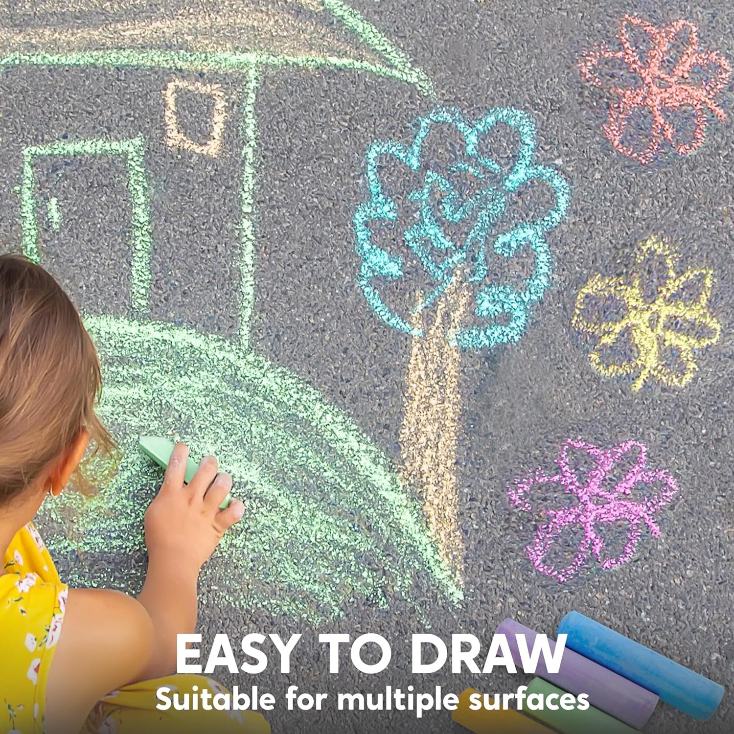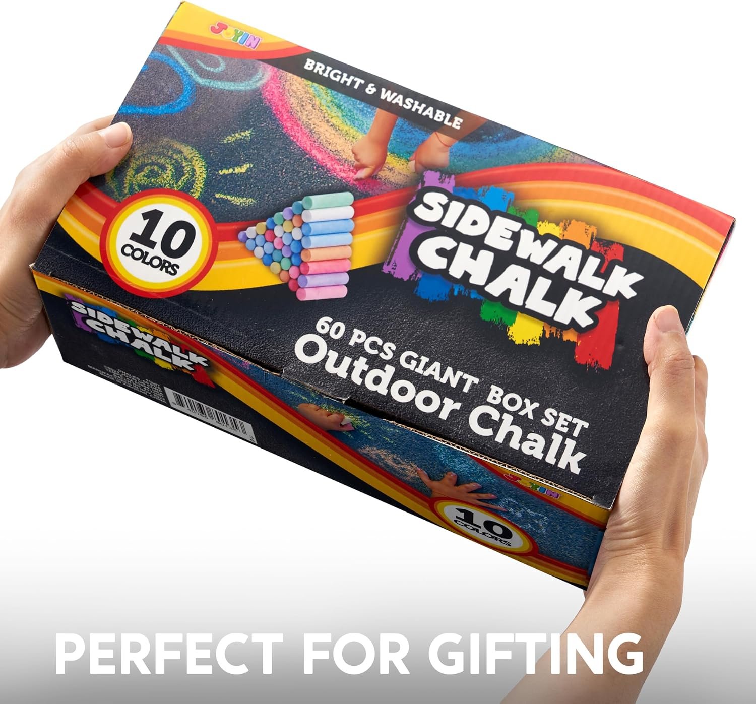 SUPER VALUE PACK. Our Outdoor Play Chalks includes 60 pieces of chalks in 10 colors (Blue, Green, Pink, Orange and Yellow to name a few)