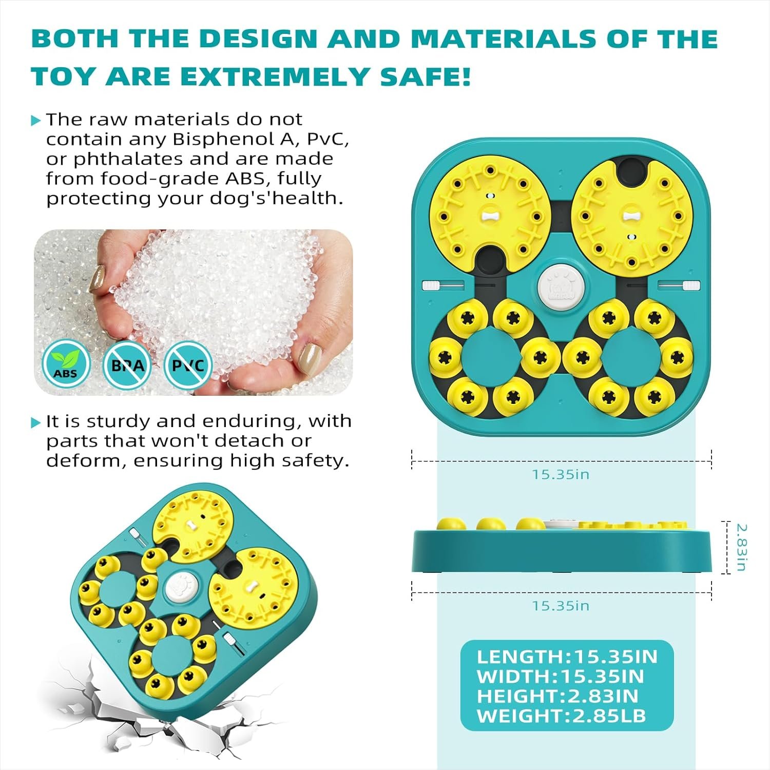 [Extra-Large Size + Food-Grade ABS, Built for Daily Use] Crafted from high-strength food-grade ABS, free of BPA, PVC, and phthalates. The XL footprint fits a wide range of dogs—from small pups to large breeds—while the durable, scratch-resistant build is made for repeated play sessions and multi-dog homes.