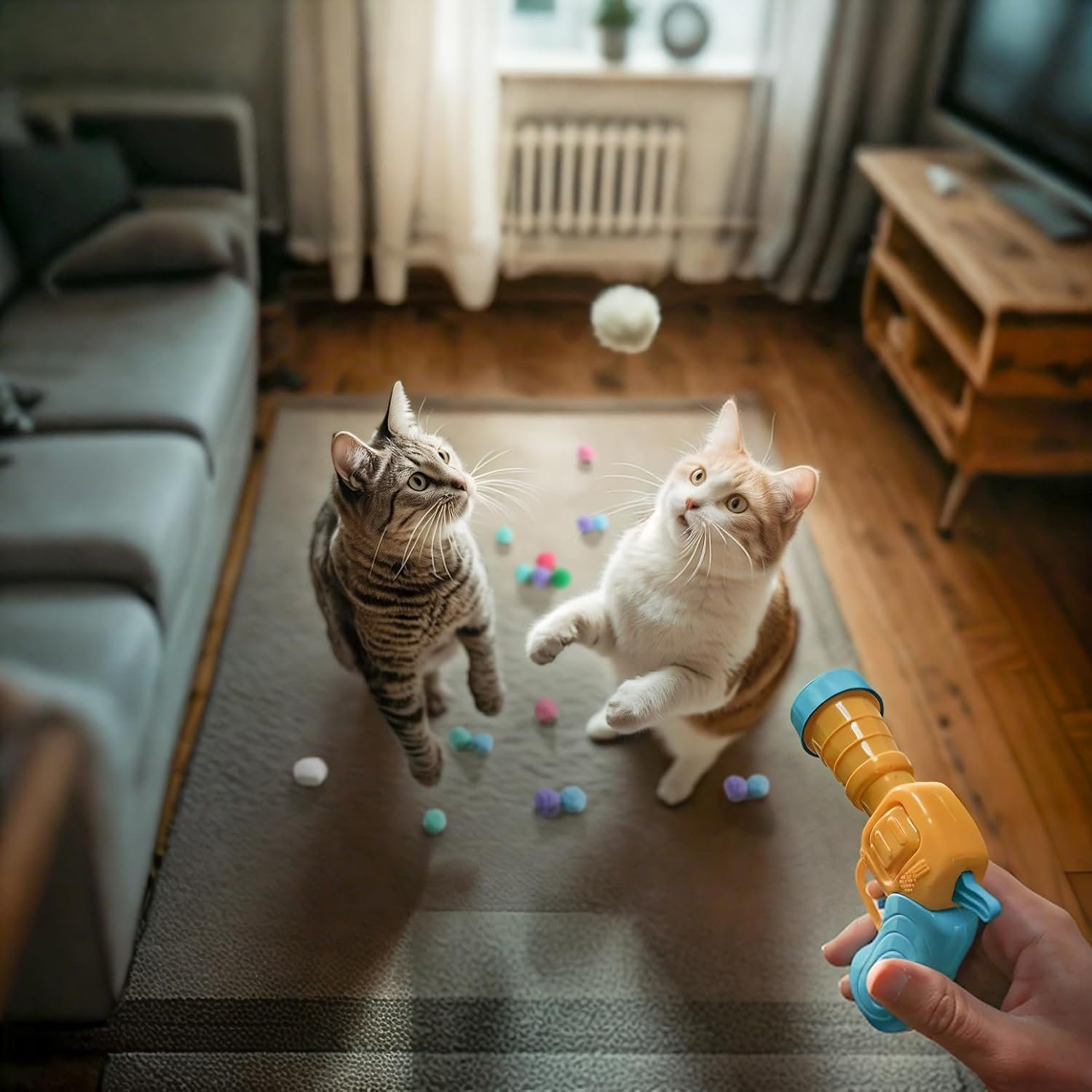 Our cat balls toy with a launcher adds an exciting and dynamic element to playtime, providing both physical exercise and mental stimulation for your cat. It’s a great way to engage with your furry companion and create memorable play moments together.