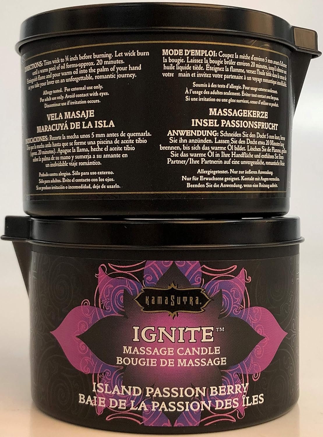 ROMANTIC EVENINGS: Indulge in an Island Passion Berry scented massage with a wax-free candle, great for creating a romantic evening. Share tender moments while enjoying the soothing aroma and a luxurious massage.
