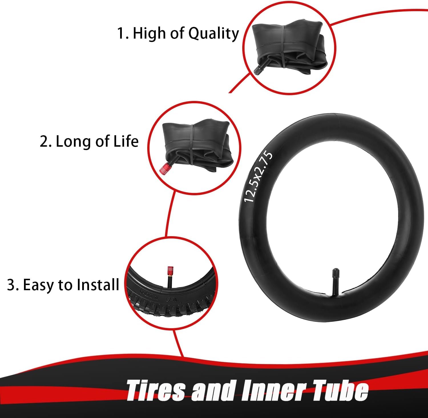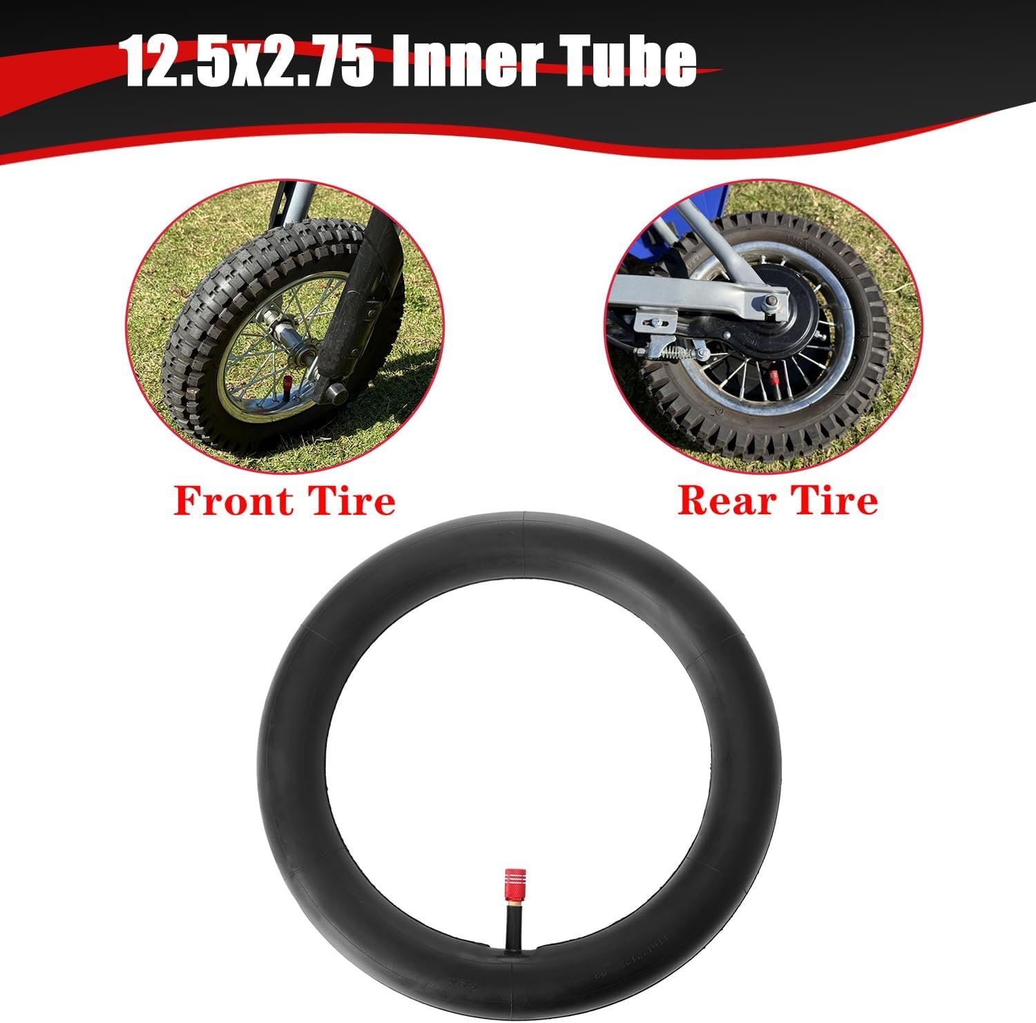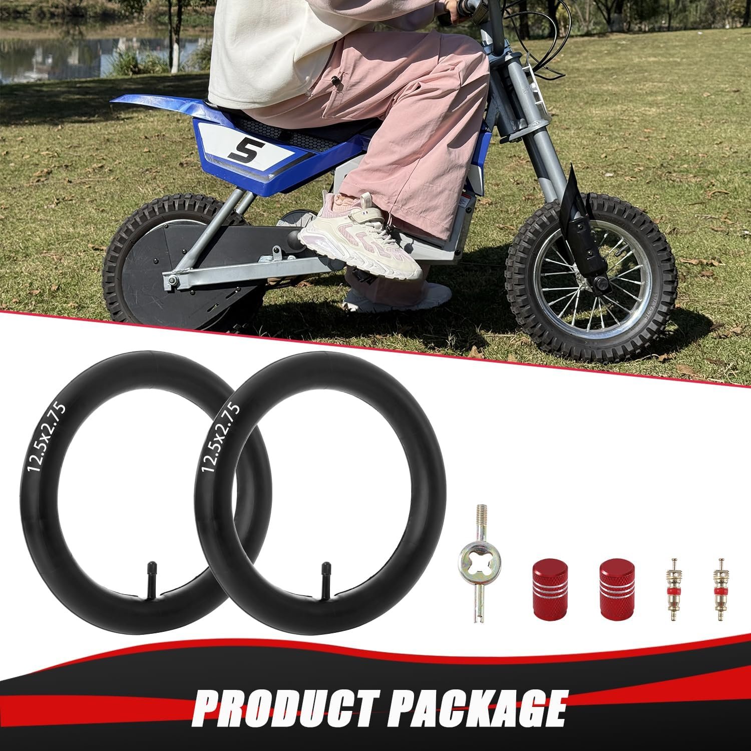 Package Including : 12.5×2.75 Inner Tube x 2, Valve Core Wrench x 1, Brass Valve Stem Cores x 2, Red Stem Valve Caps x 2.