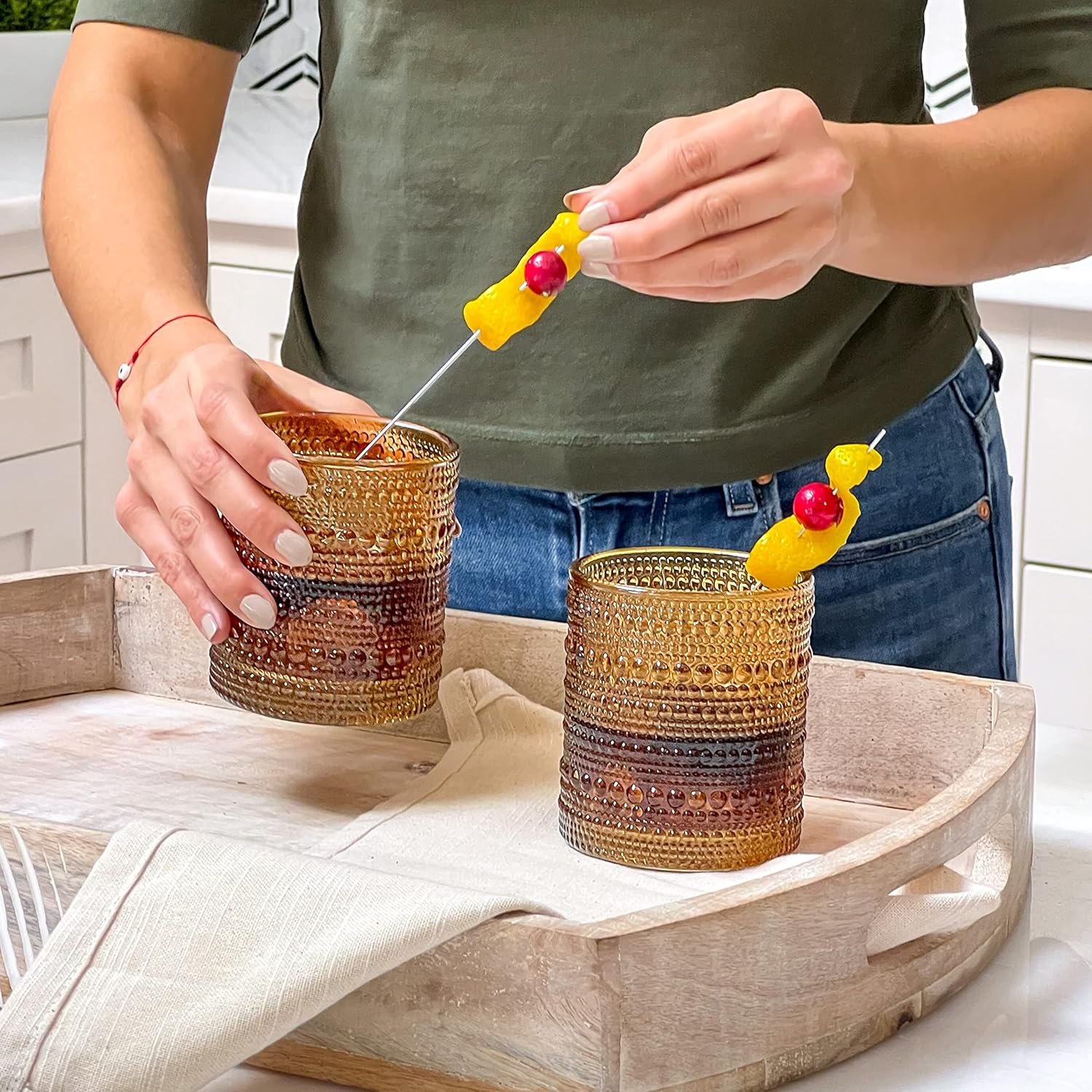 Sweet tea glasses, Water glasses, juice cups, these are great for any cold drink from cocktails to mocktails and even beer! With a nice weight they feel great in your hand and look even better! The retro boho esthetic is sure to make all your guest where you got them from!
