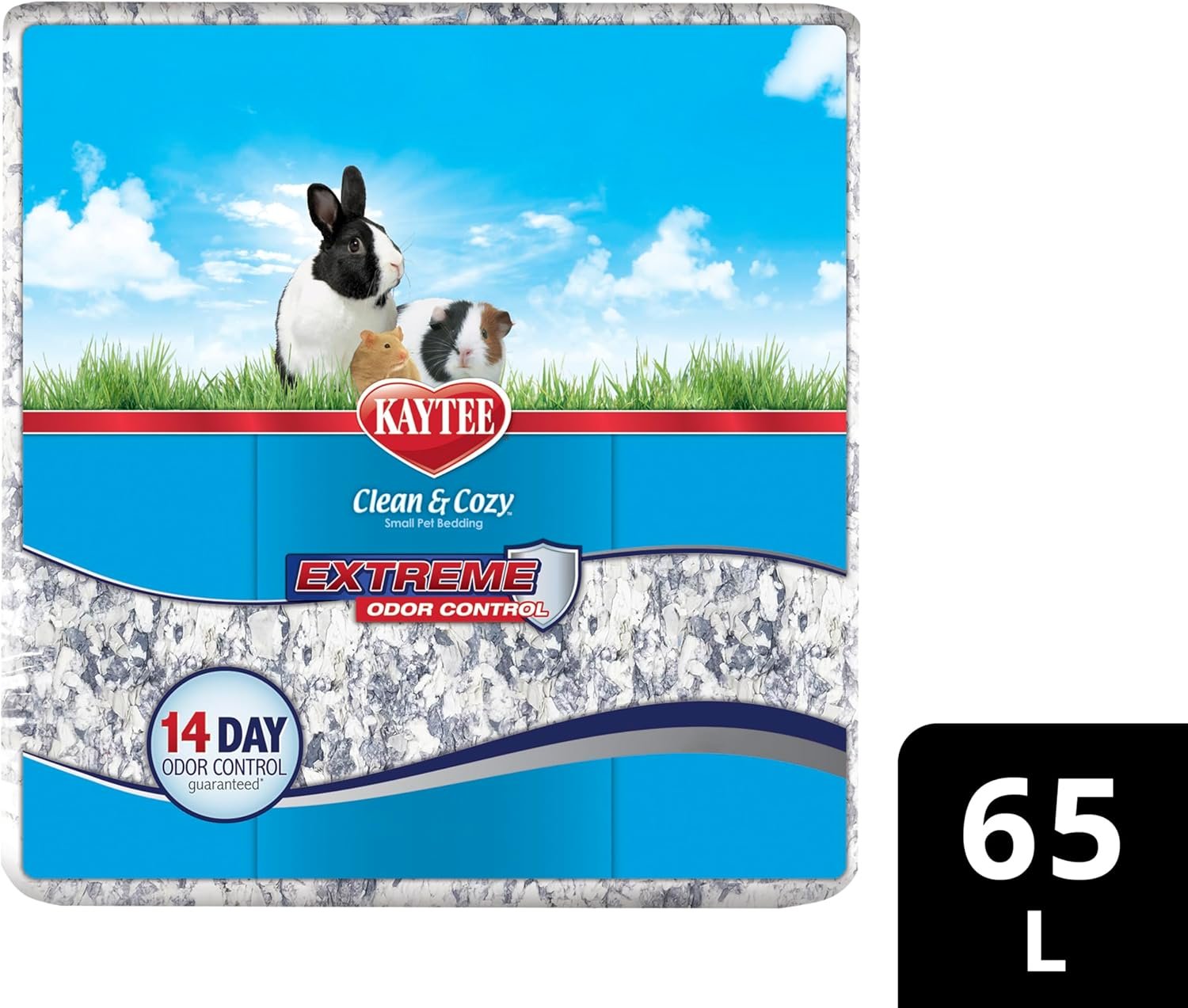 We believe all small animals should get the care they deserve. Our products are made with only the best materials and are always designed for your pet’s well-being. Kaytee Clean & Cozy Extreme Odor Control bedding makes keeping a clean habitat for your small animal simple and convenient. This bedding helps control ammonia odors for 14 days and is incredibly absorbent, absorbing up to 6x its weight in liquid to maintain a fresh, dry habitat. Pets and pet parents can breathe easy with our 99.9% dust-free, fragrance-free and pet-safe bedding. Kaytee uses premium paper to provide the ultimate comfort since it is super soft and is free from harmful chemicals or by-products. It’s gentle on noses and soft on paws. With every step, your small animal will be cozy, clean, and fresh.