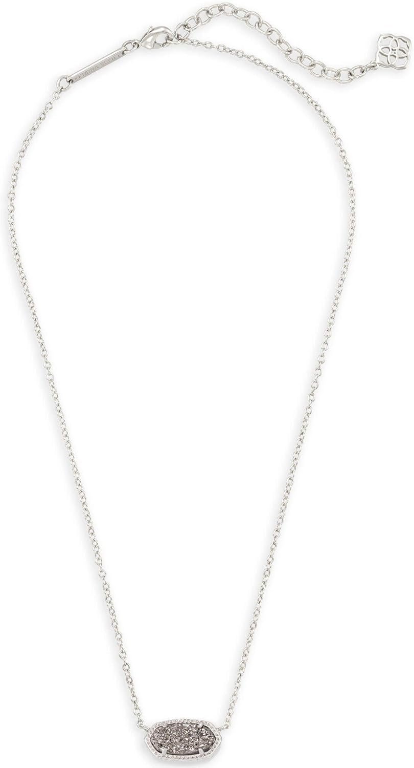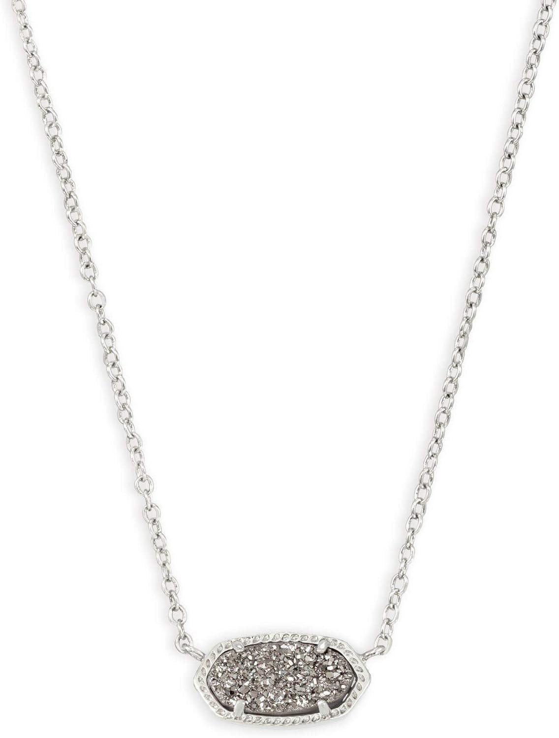 Whether worn solo or layered, the Kendra Scott classic Elisa Oval Pendant Necklace is a delicate must-have. It sparkles with Platinum Drusy, offering subtle, shimmering elegance.