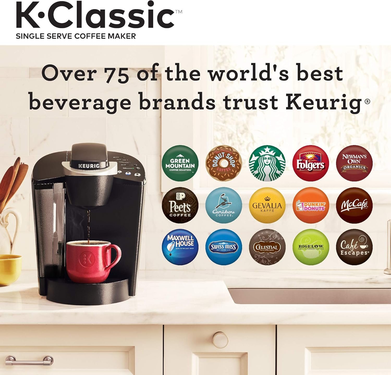 Brews coffee, tea, hot cocoa, specialty, and iced beverages