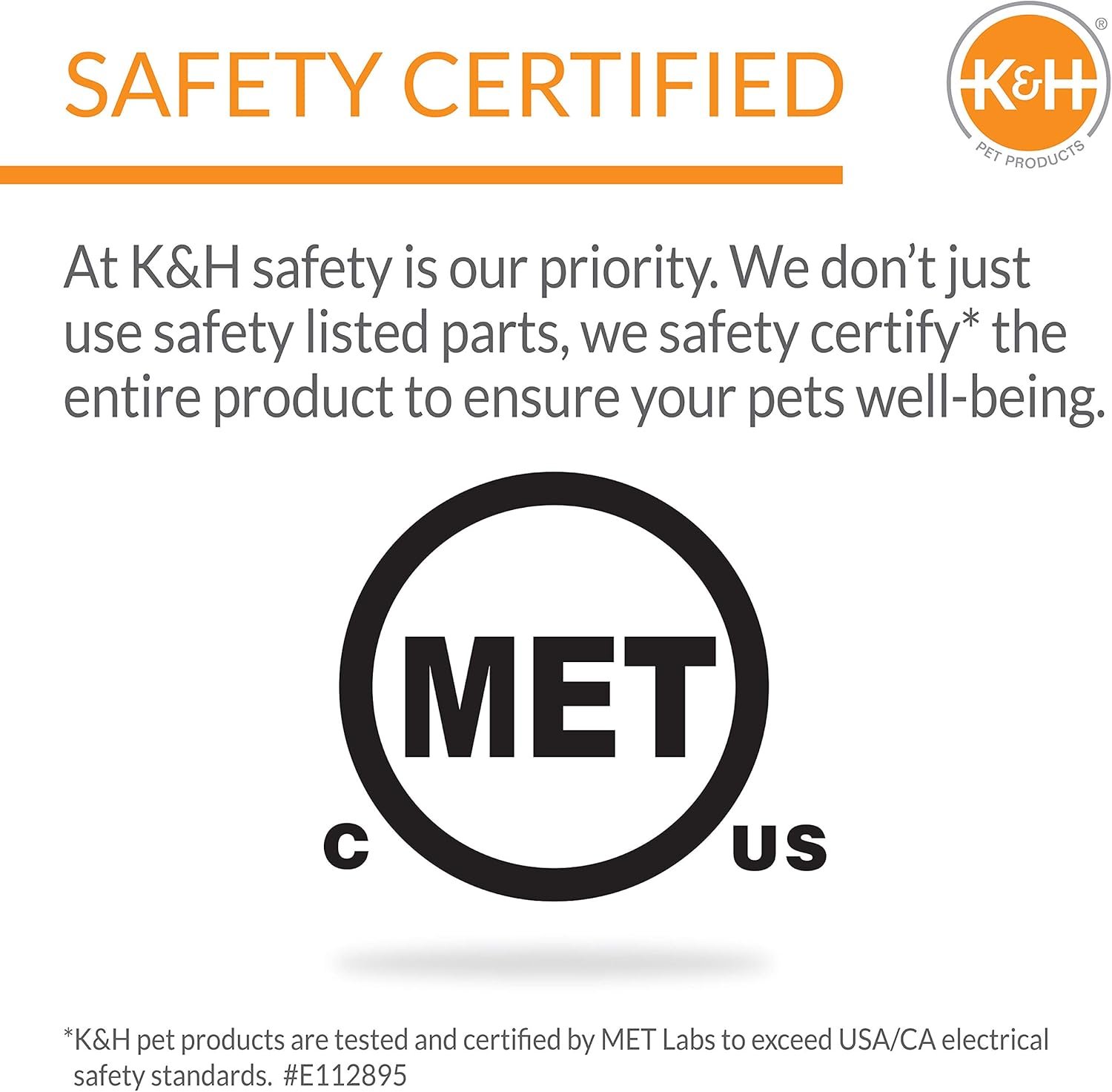 SAFETY: K&H doesn’t just use safety listed parts, we safety certify the entire product. This heated cat bed has been tested & certified by MET Labs and exceeds USA/CA electrical safety standards