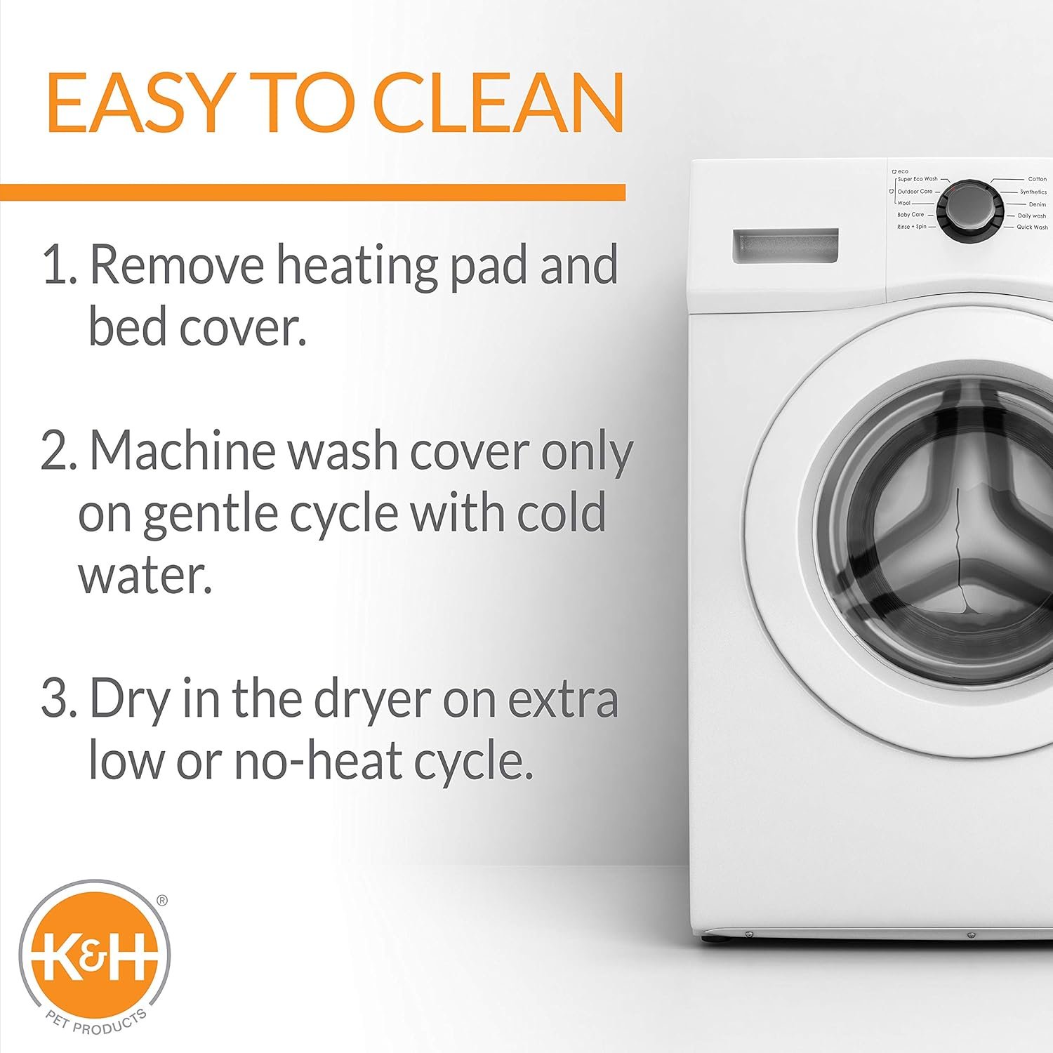 MACHINE WASHABLE: K&H Thermo-Kitty fashion splash heated cat bed features a removable cover for easy wash and care