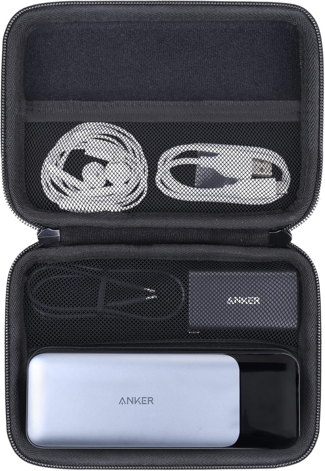 This anker 24000 hard case, the interior is made of high quality velvet, the soft inner structure ensures the protection of the 737 power bank. The anker 24k power bank has a hard case with a mesh design on one side to store your anker 737 power bank powercore 24k accessories and soft storage on the other side for your anker 737 power bank.