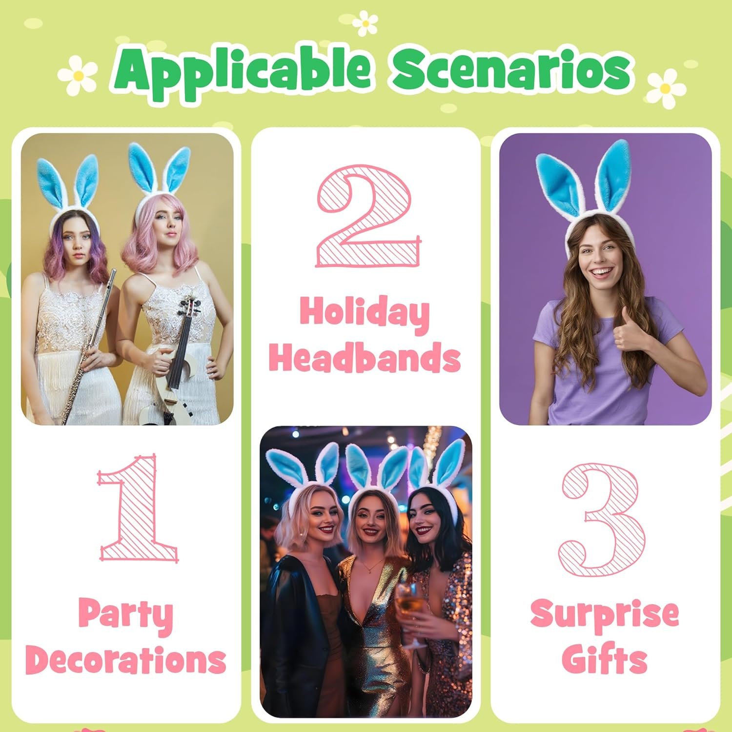 Adorable Plush Bunny Ears: This cute headband features soft, plush rabbit ears that add a fun and playful touch to any outfit. Perfect for Easter, Halloween, or costume parties.