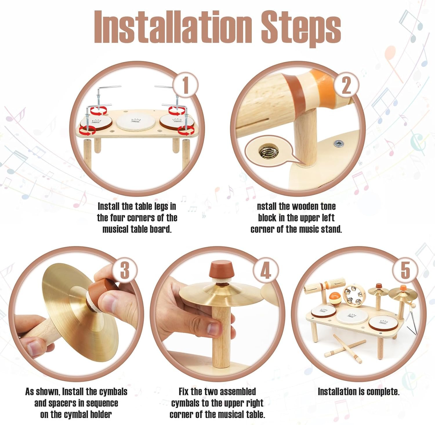 Educational Montessori Toys: As an early development toy set, toddler can develop their sense of hearing and touch by playing with these musical instruments, which help to develop their sensitivity to music and sense of rhythm, and improve their creativity and ability to recognize musical instruments.