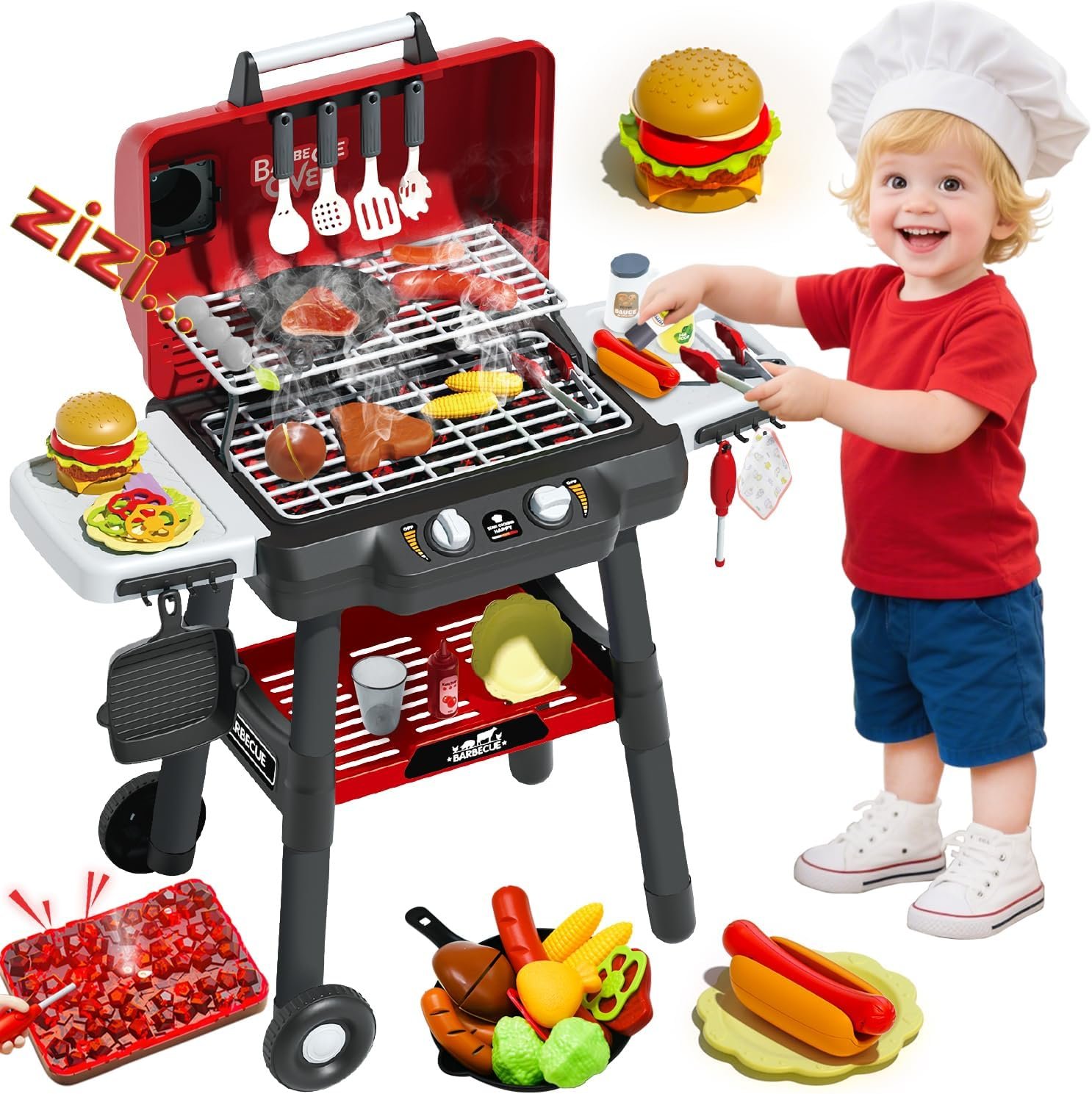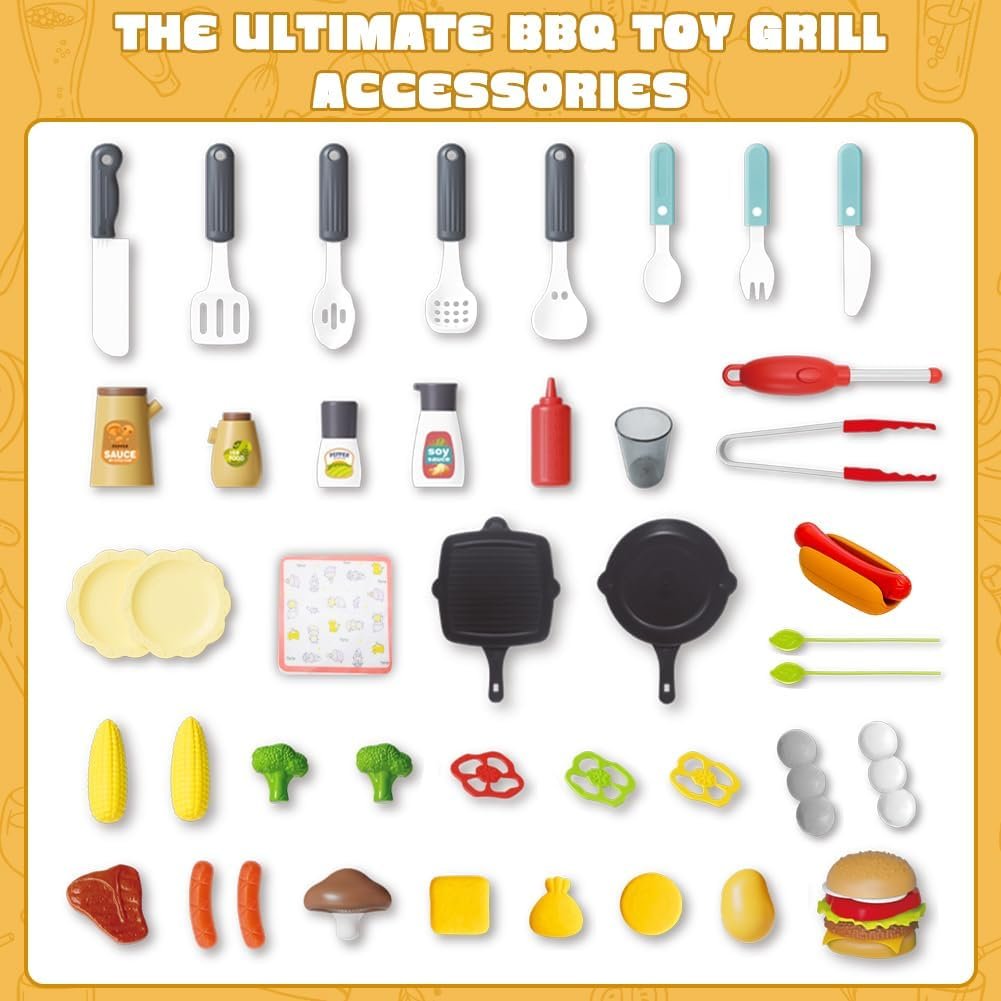 Perfect Christmas Gift: Suitable for children aged 3–5, kids kitchen playset makes an ideal gift for birthdays, Christmas, or summer holidays, bringing an engaging barbecue experience to your little ones.