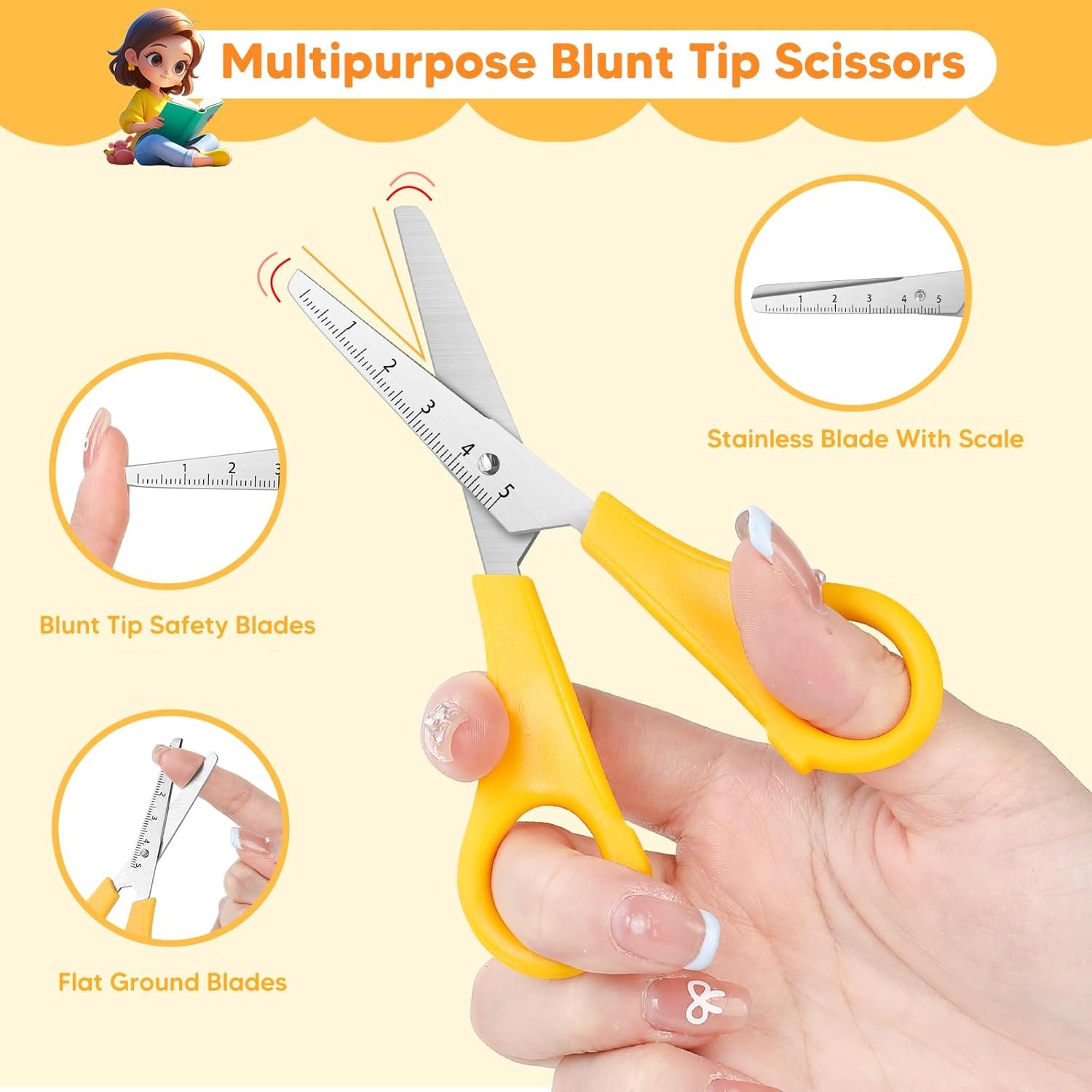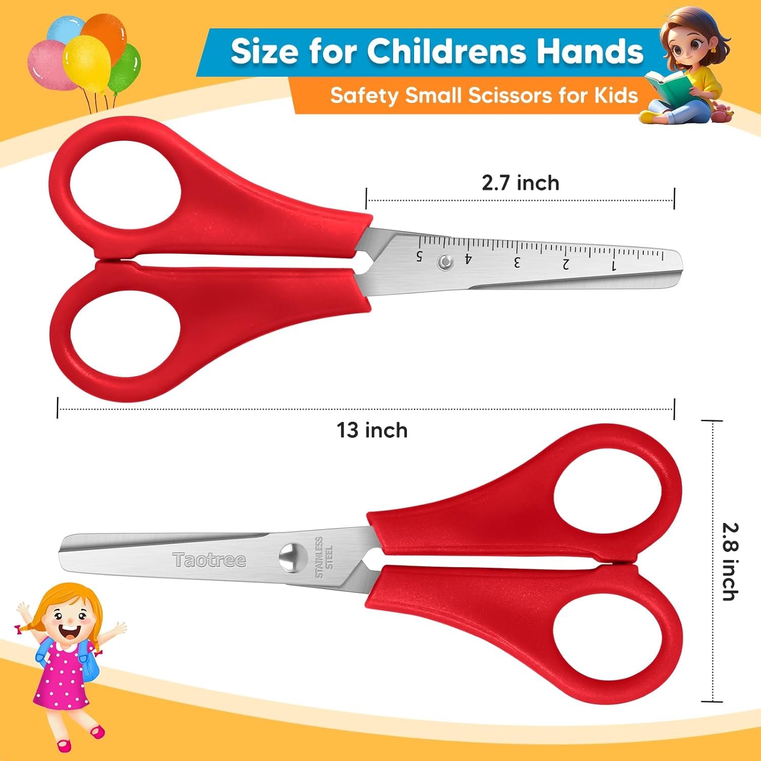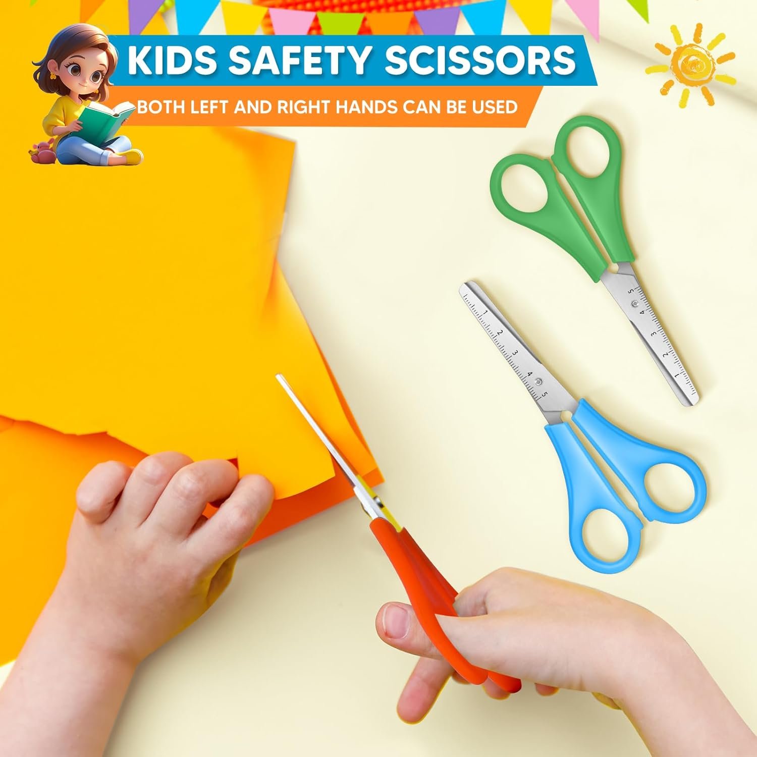 Kids Safety Scissors: Comfortable and soft handles, non-slip surface on the finger loops. Flat-ground Smooth stainless steel blades with safer rounded tips. Small scissors are compact and lightweight, toddler scissors for school craft kids scissors ages 4-5 6 7 8 9 10-12.