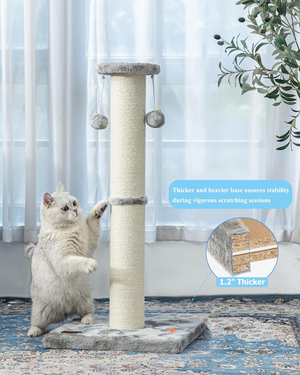 Large Sisal Scratching Surface: With a 4.3-inch diameter, the large sisal cat scratch post offers plenty of space for cats to engage their natural scratching instincts. The rough texture of sisal also helps to keep your furniture and carpets safe from damage, while offering a satisfying scratching experience for your feline friend.