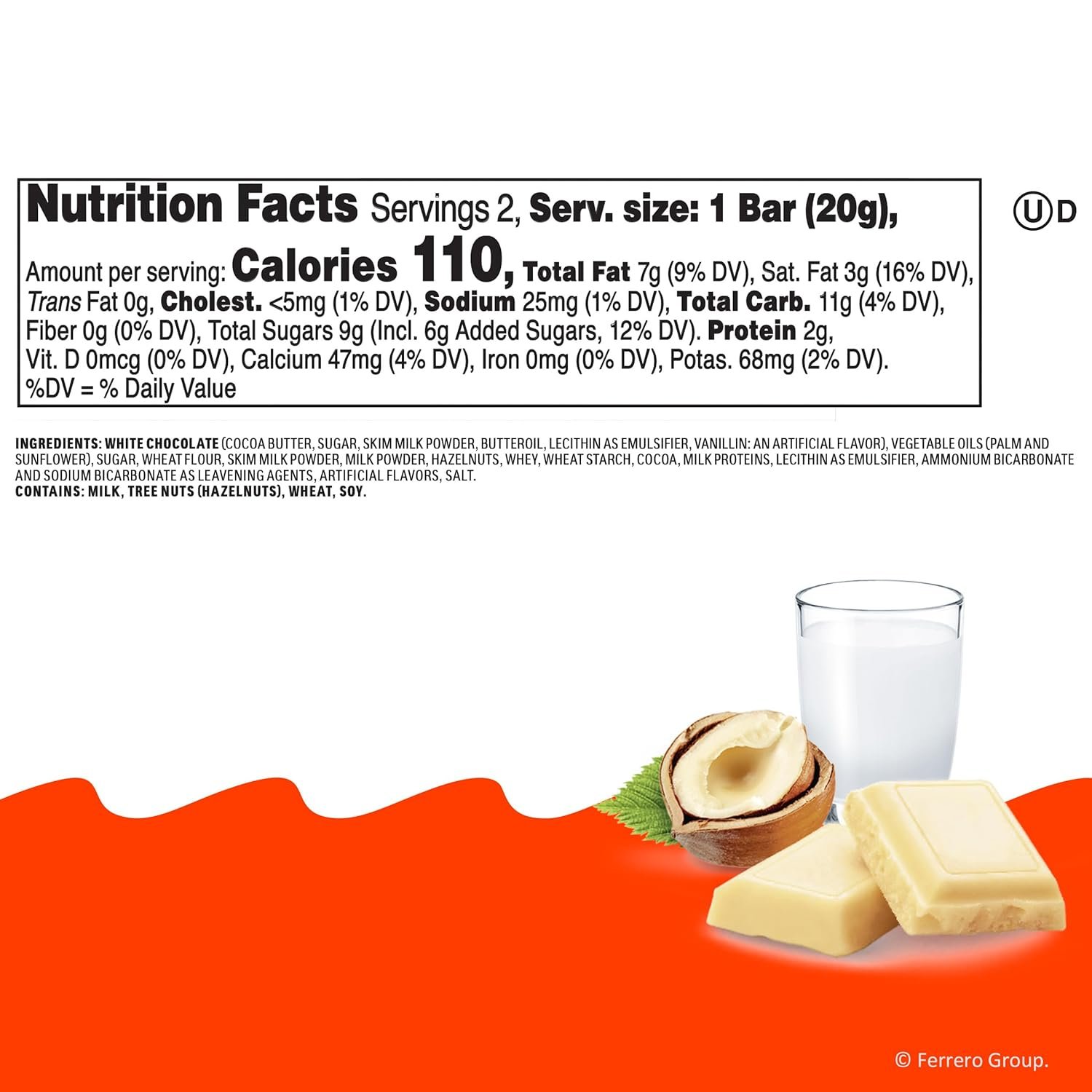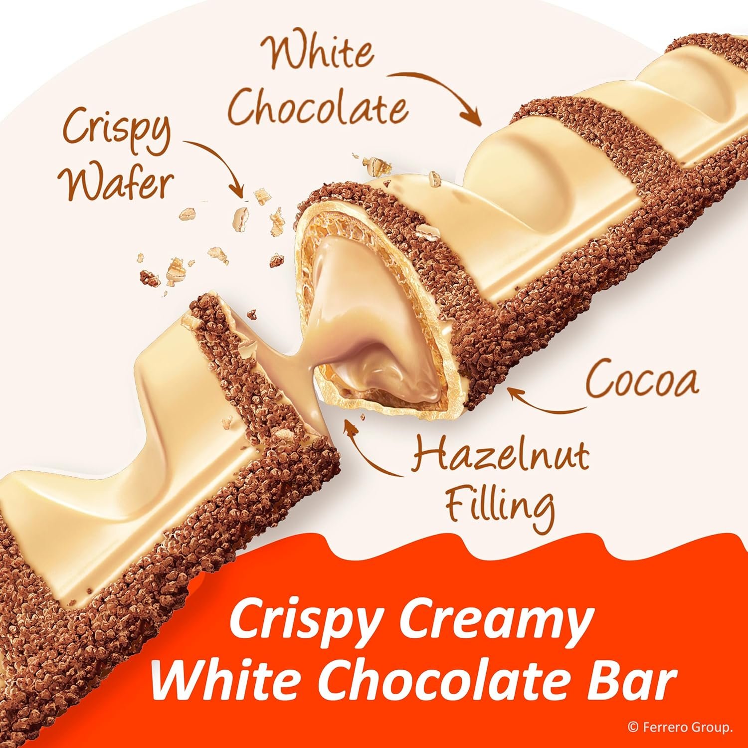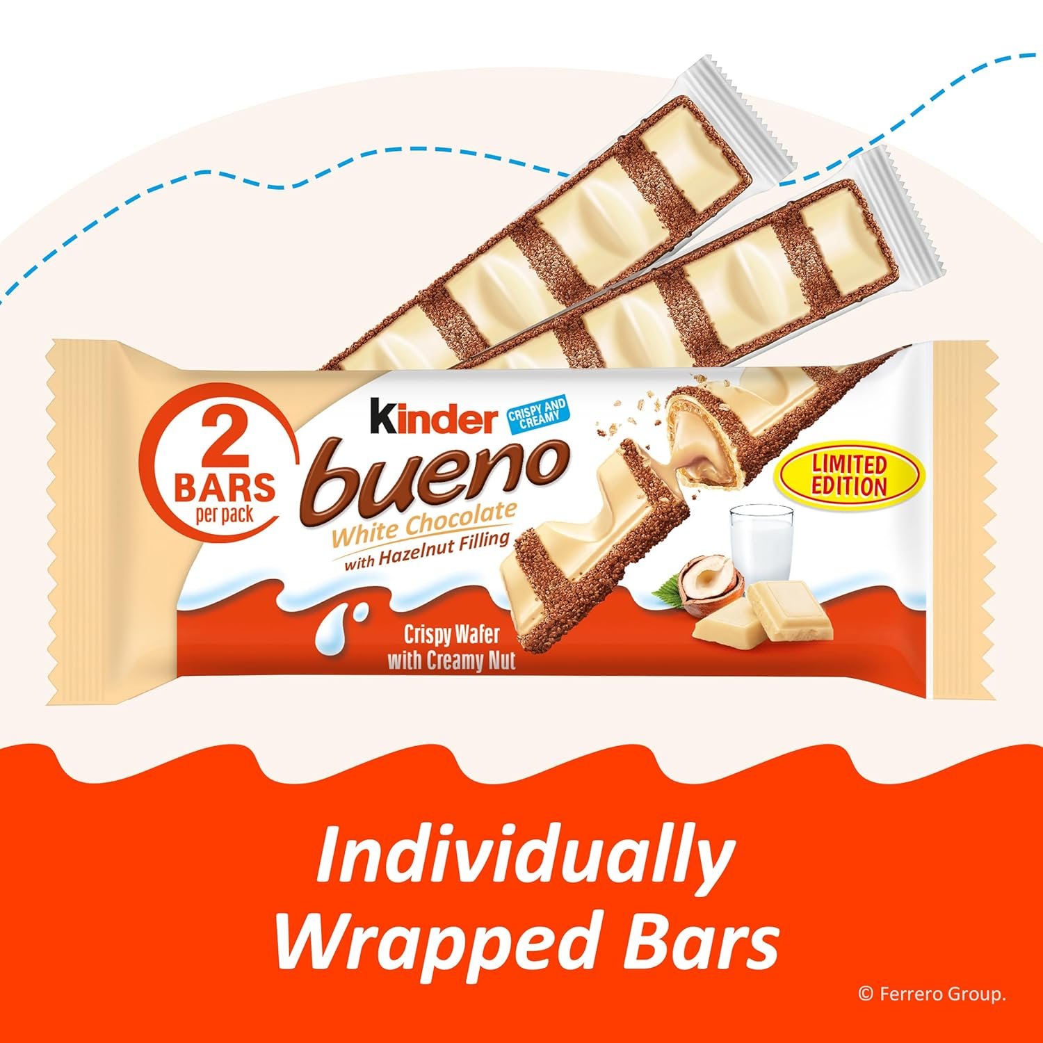 DISCOVER THE EXTRAORDINARY: 2 white chocolate bars with a crispy wafer and creamy hazelnut filling in each 1.4 oz pack (30 Packs); white chocolate bulk bars in a limited time only flavor
